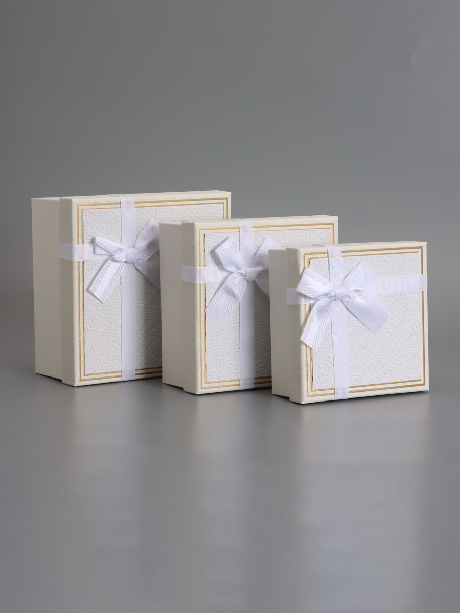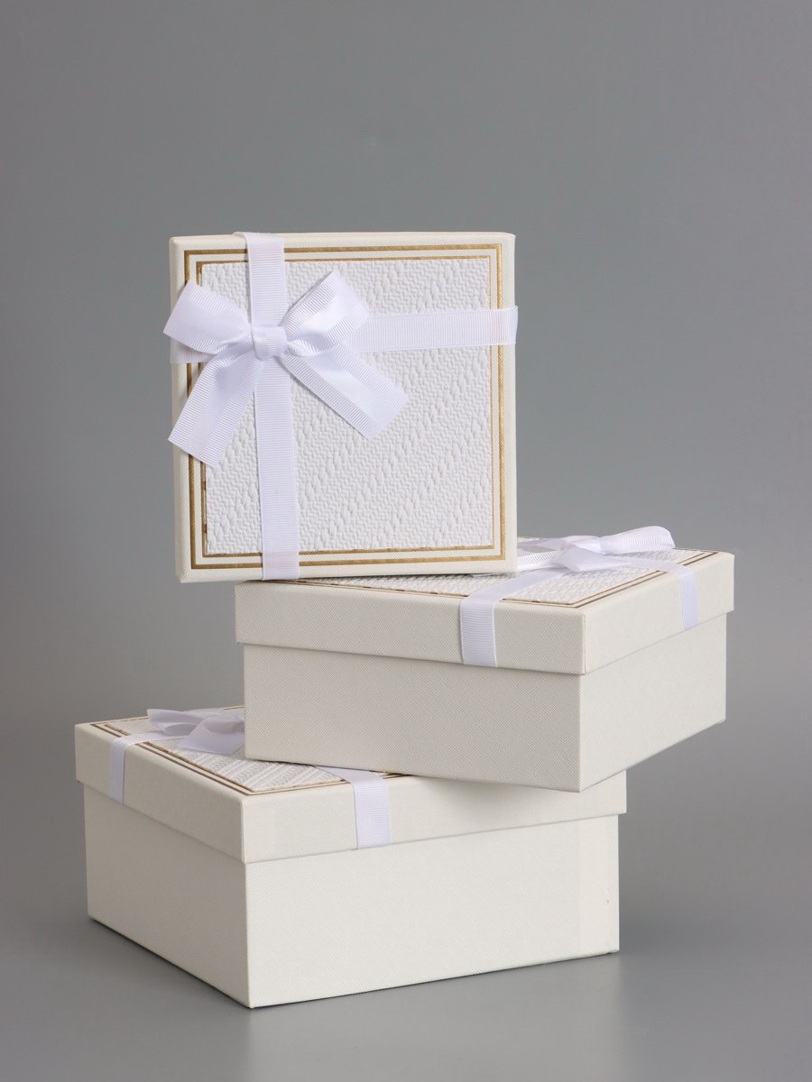 Набор подарочных коробок 3 в 1, квадратные, белый, 19x19x9.8; 17x17x8; 15x15x6.5 см, 19x19x9.8 см., UPAK LAND, Китай