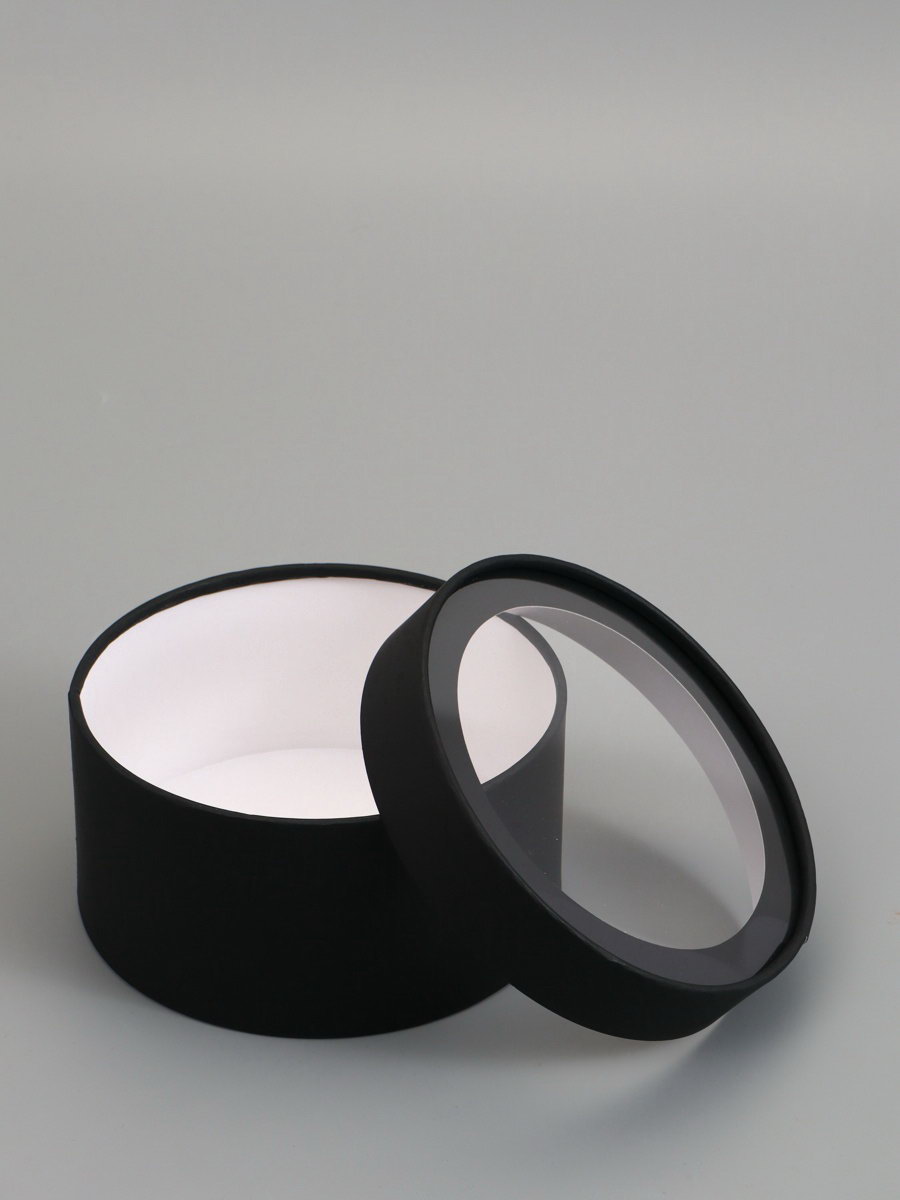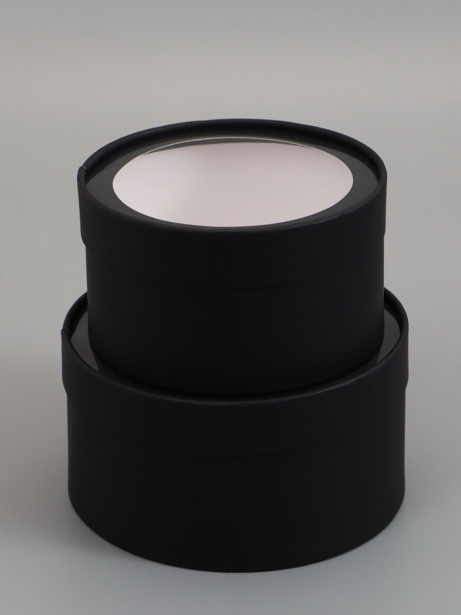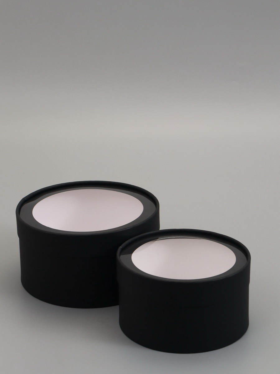 Набор подарочных коробок 2 в 1 круглых, черная, с окном, 21x11 - 18x10 см, UPAK LAND, Россия