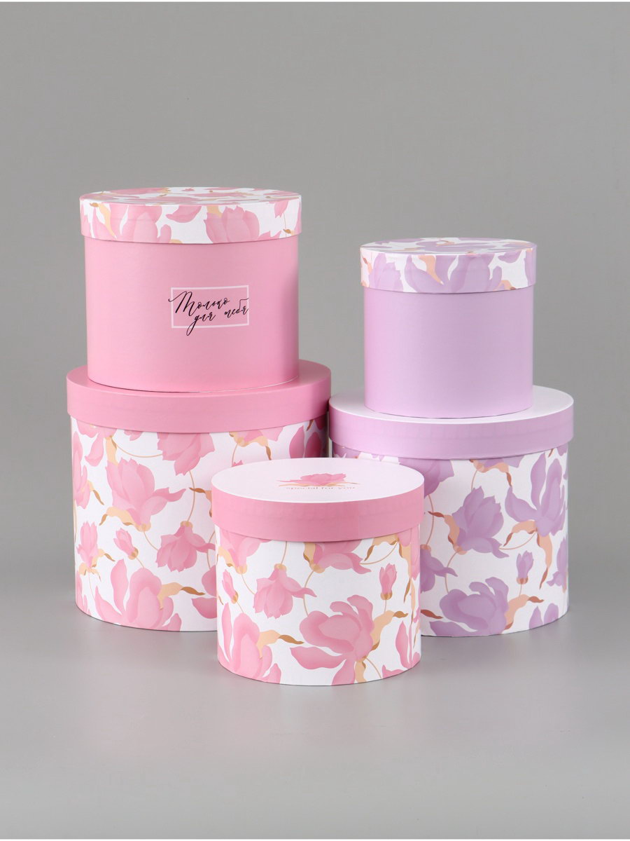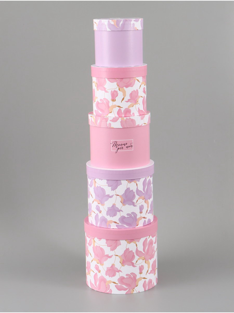 Набор шляпных коробок 5 в 1 "Нежные лилии", 13x14 - 19.5x22 см, Дарите Счастье, Россия