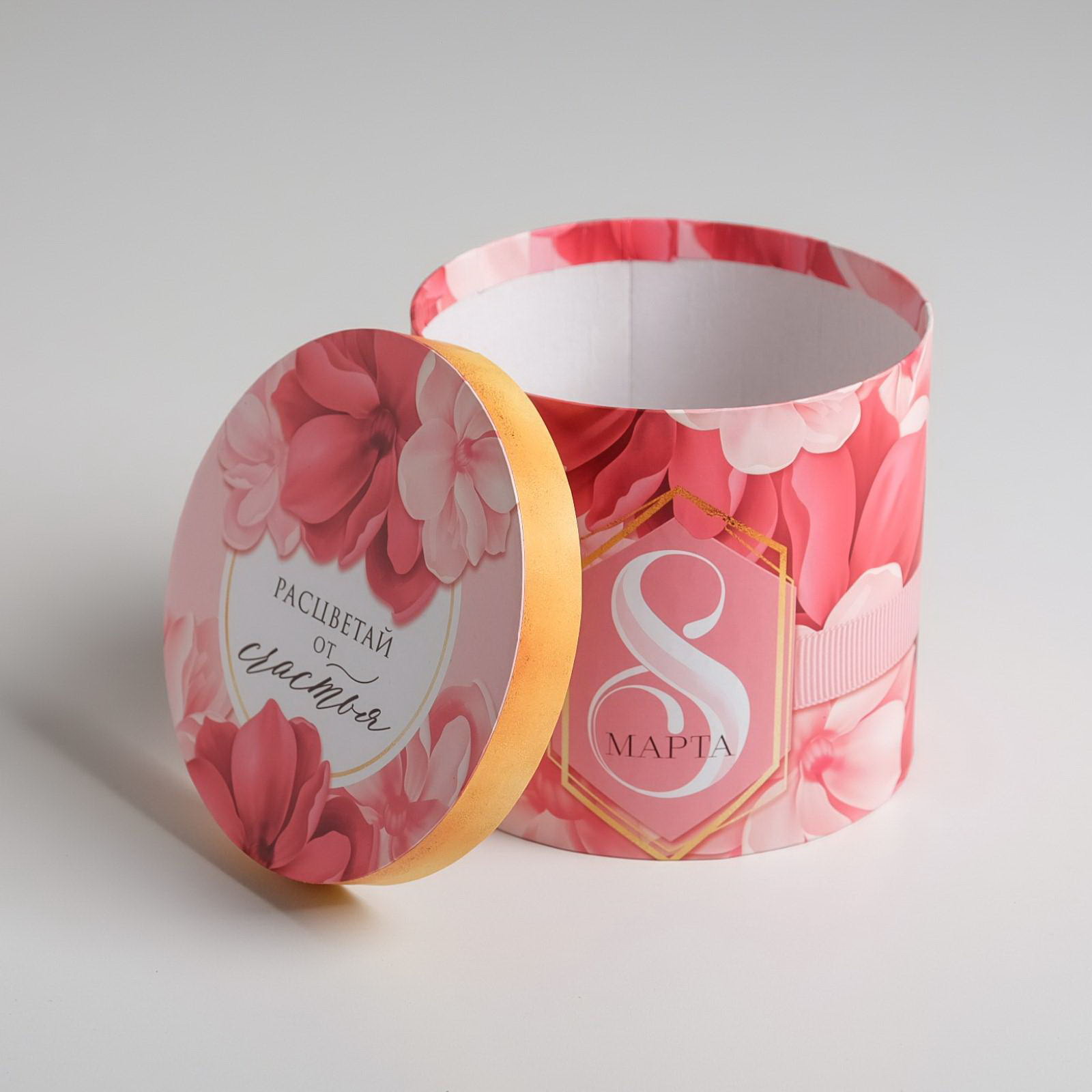 Коробка подарочная круглая "С 8 марта", 13 x 14 см, Дарите Счастье, Россия