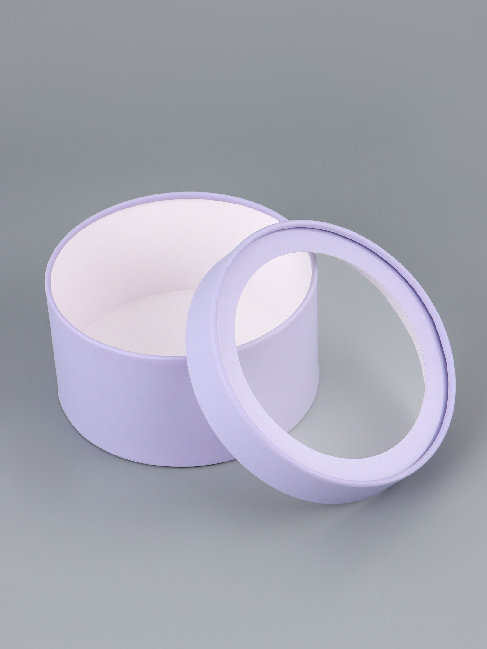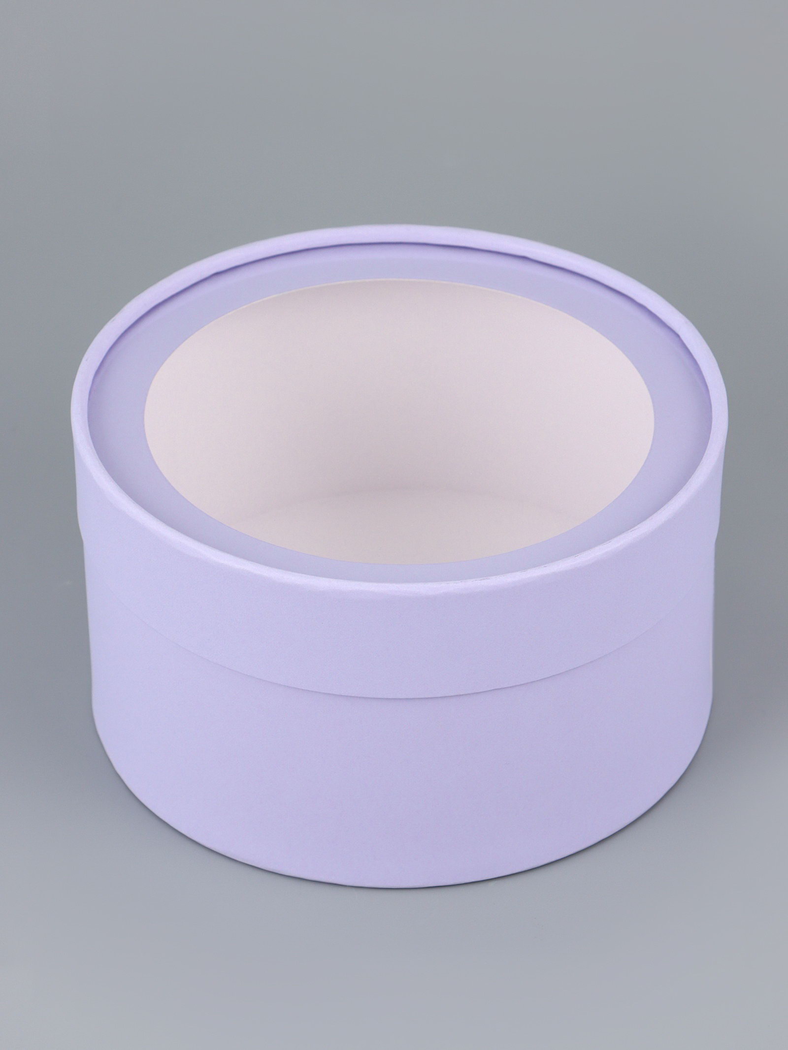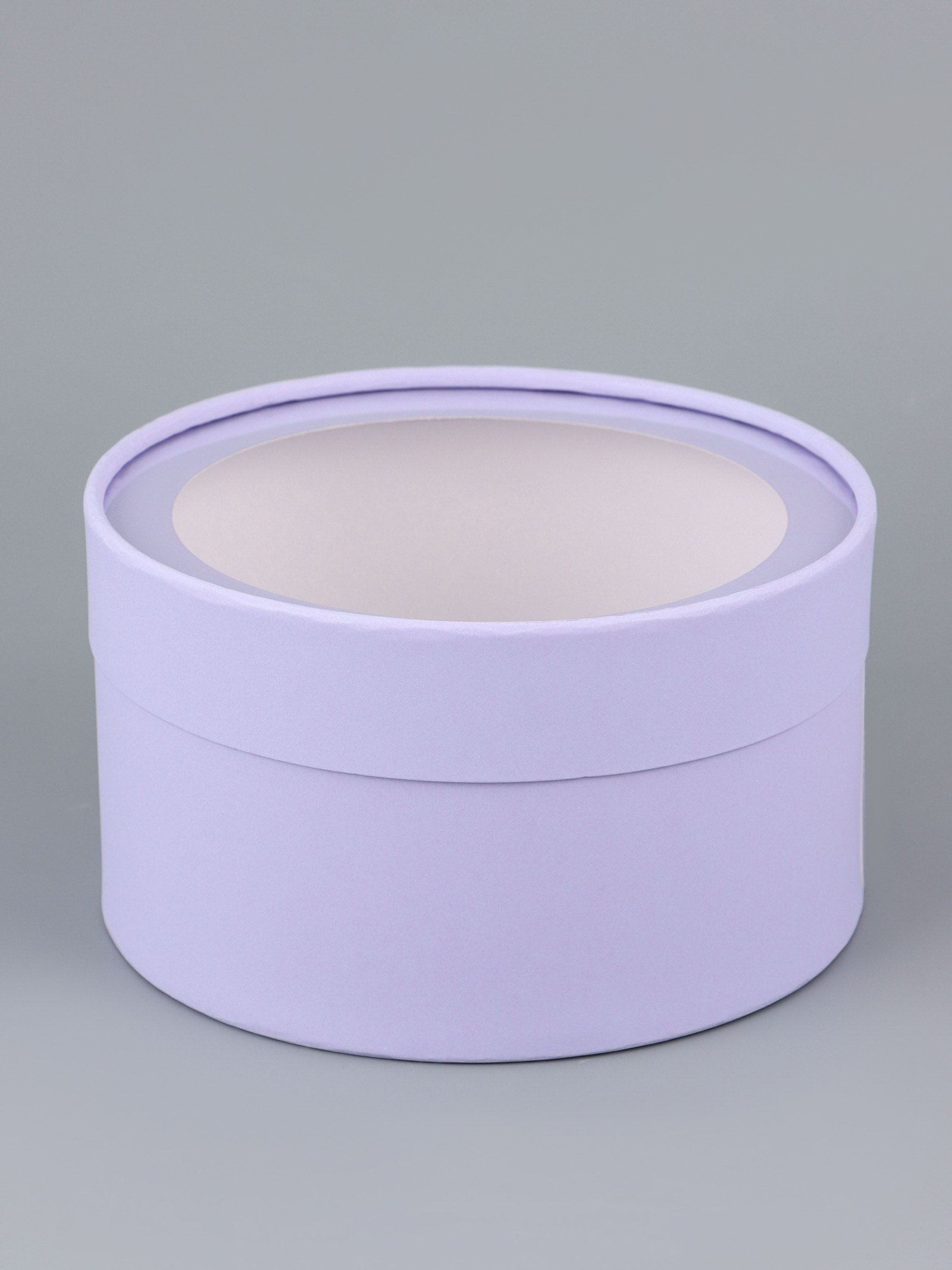 Подарочная коробка круглая бледно-фиолетовая, завальцованная с окном, 18x10 см, 18 см., UPAK LAND, Россия