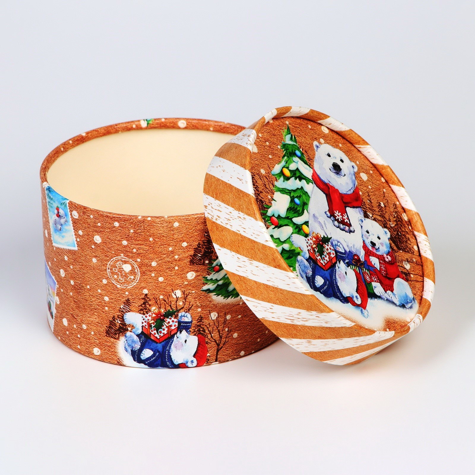Коробка подарочная новогодняя для макарун тубус без окна "Мишки", 12x8 см, UPAK LAND, Россия