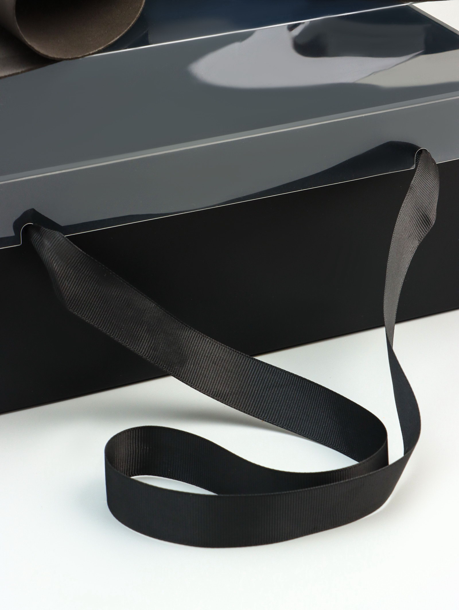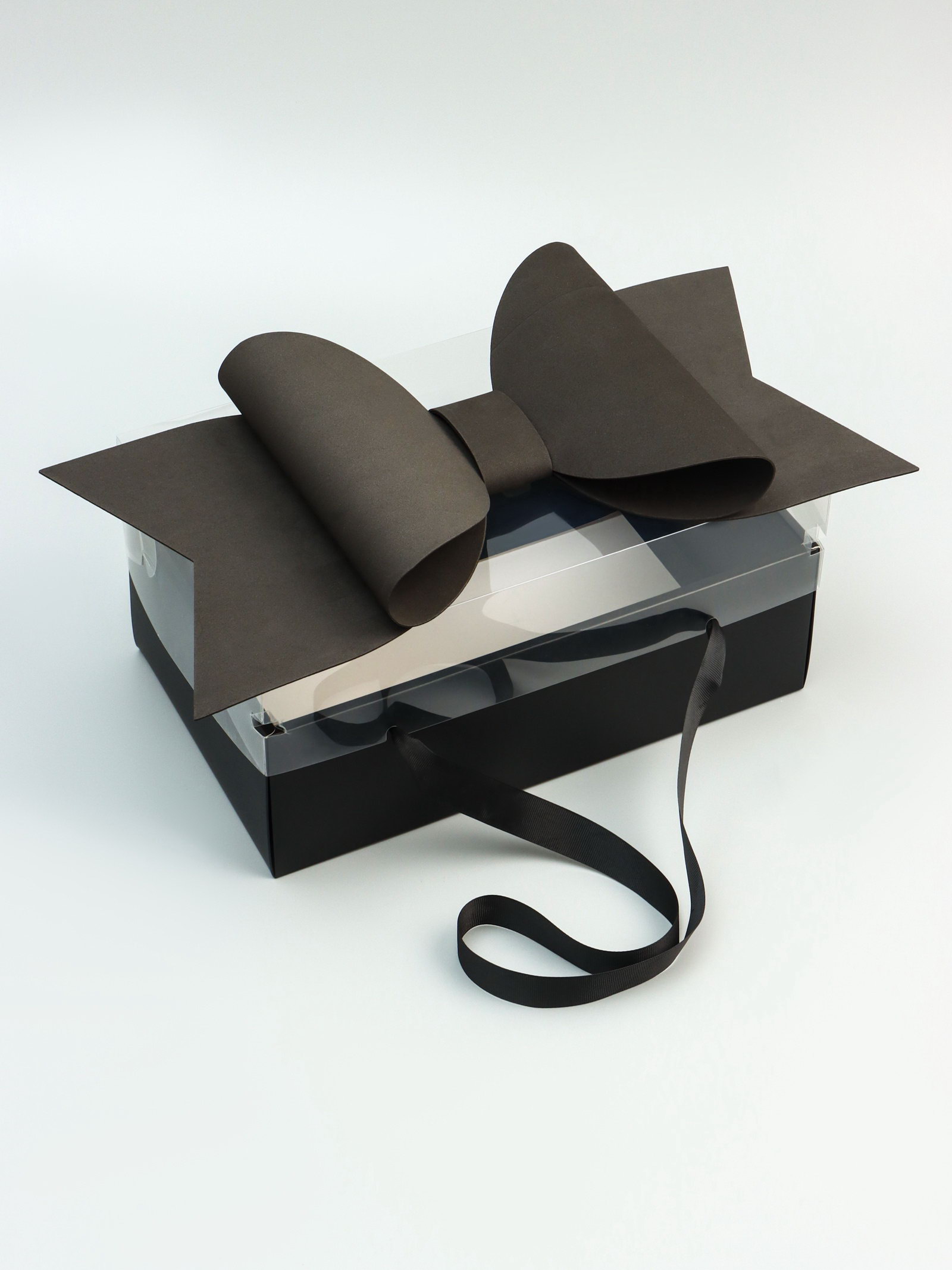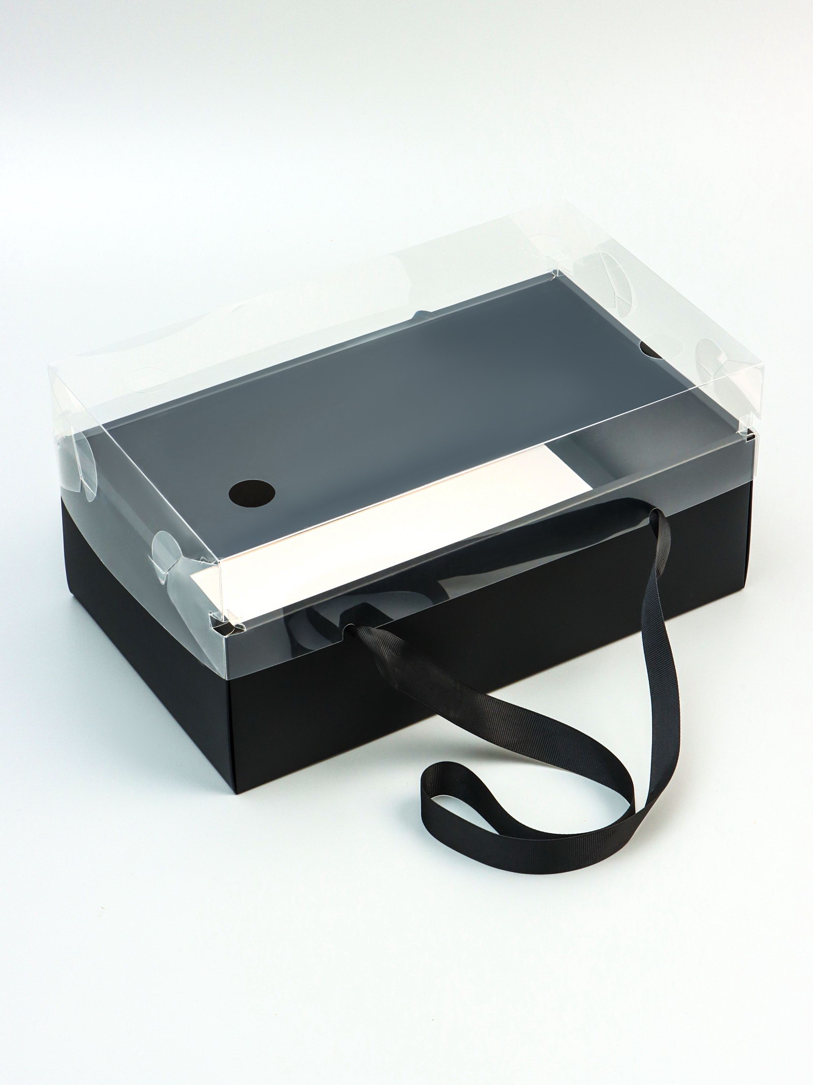 Коробка подарочная с бантом, ручками и прозрачной крышкой 35x21x15 см Черная, 21x35x15 см., UPAK LAND, Китай