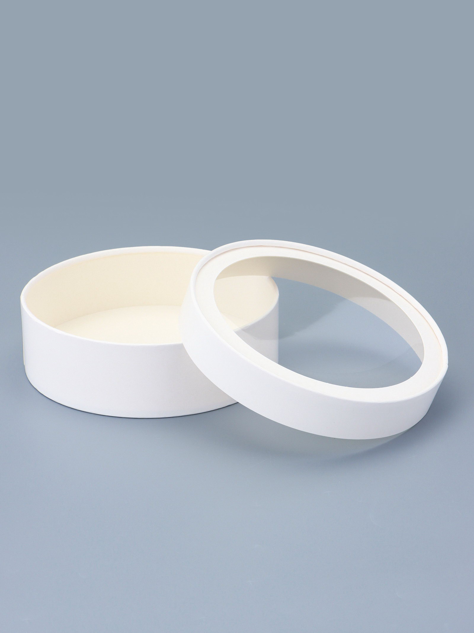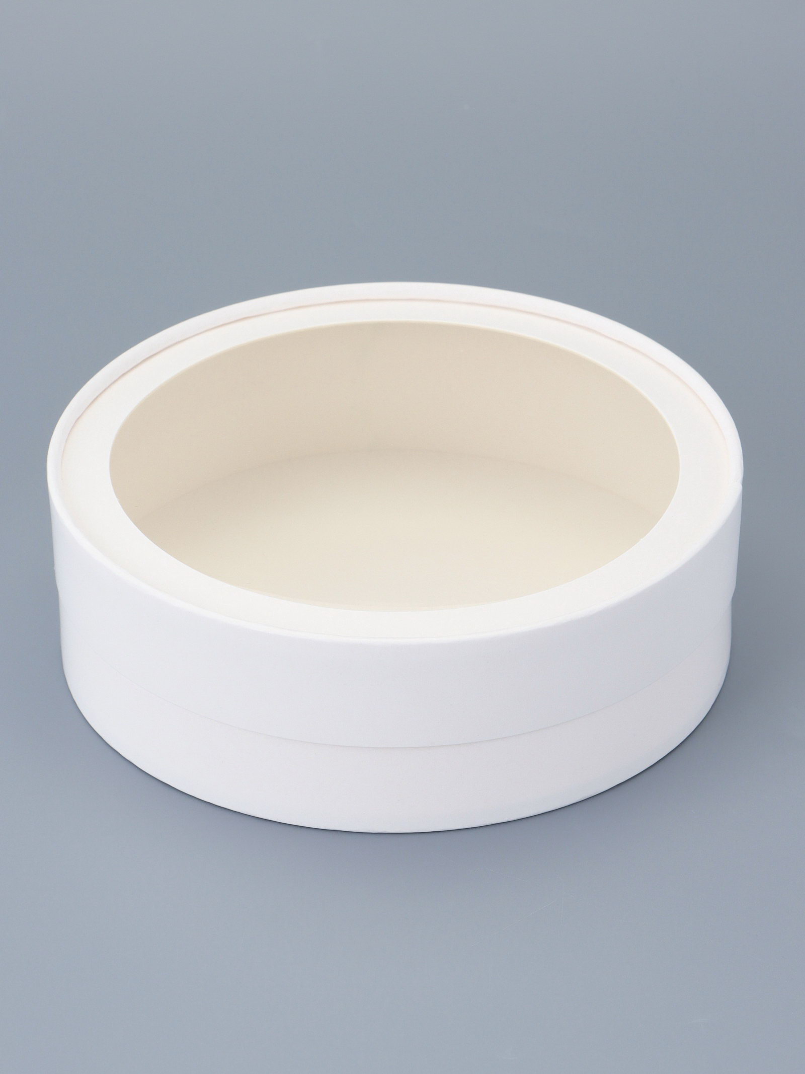 Коробка подарочная круглая с окном, завальцованная, белая, 18x6 см, 18 см., UPAK LAND, Россия