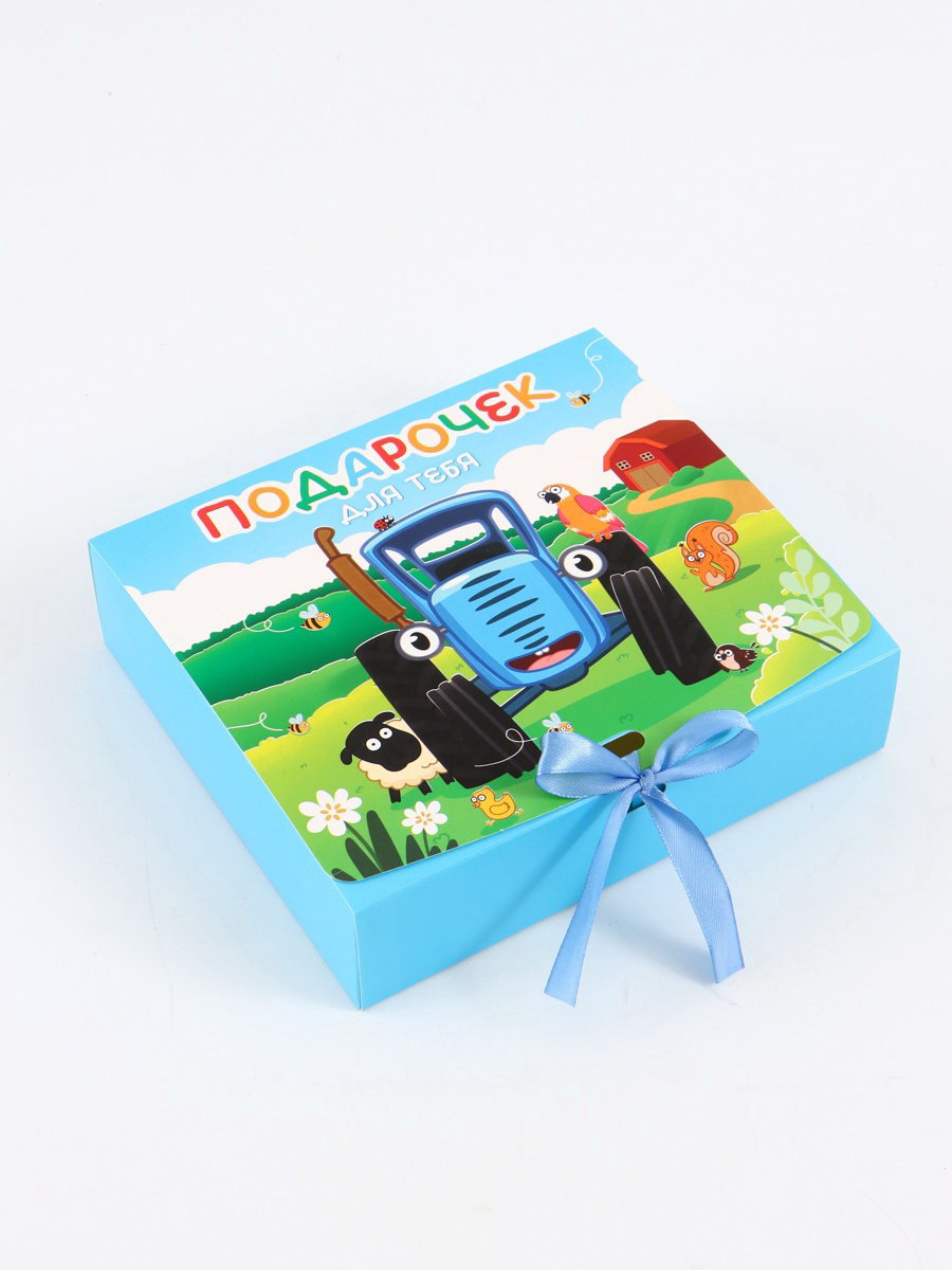 Коробка подарочная 20 x 18 x 5 см, Синий трактор, Россия