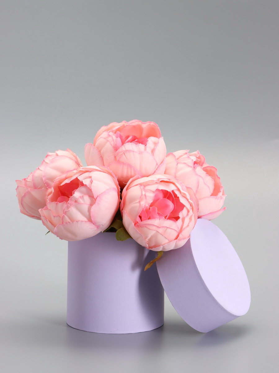 Шляпная коробка подарочная сирень, круглая, 10x10 см, UPAK LAND, Россия