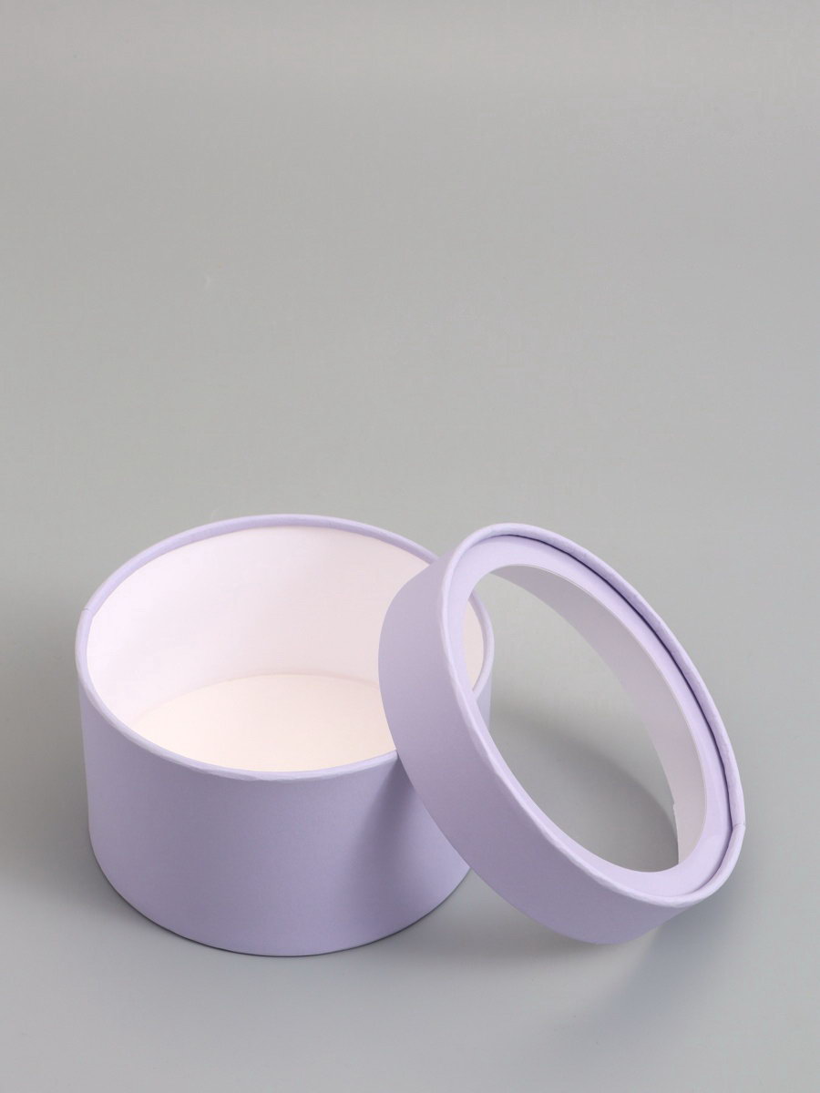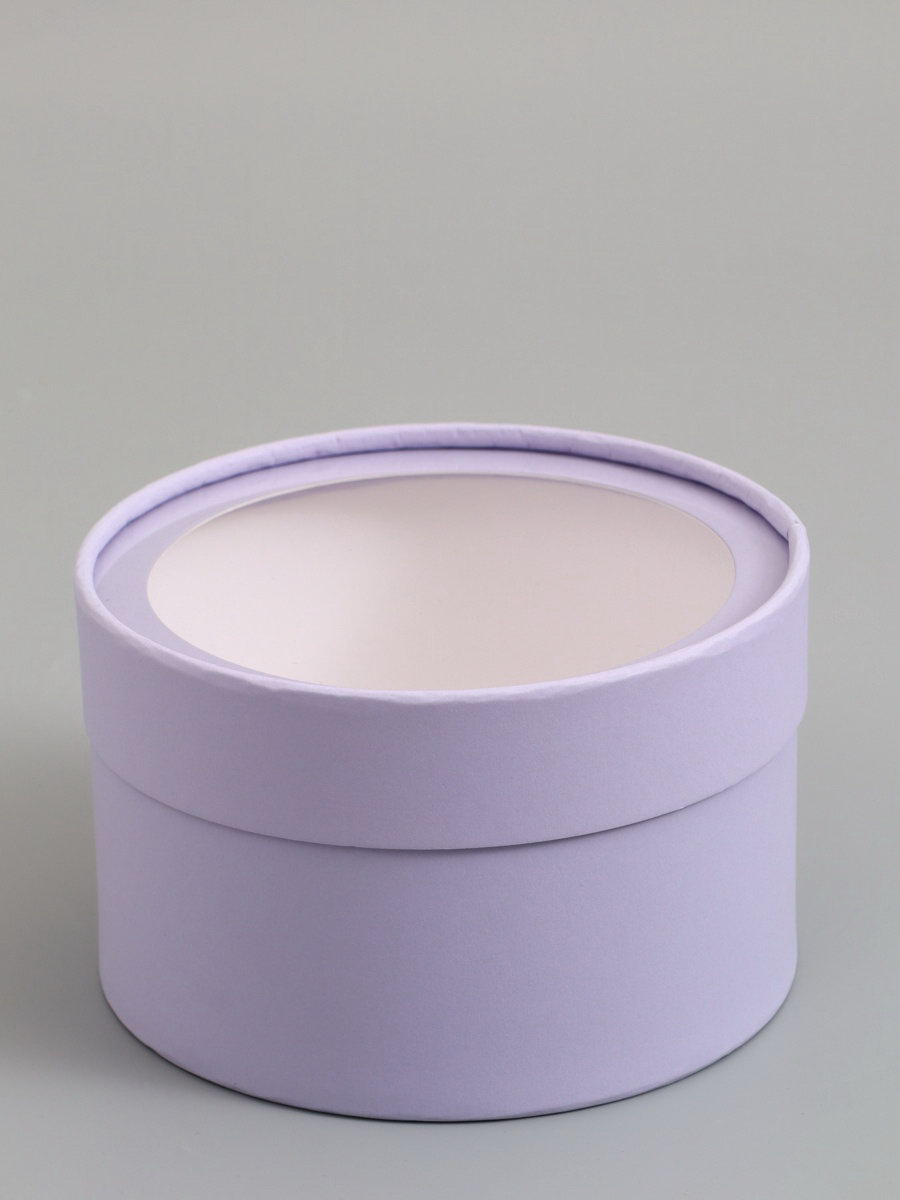 Подарочная коробка круглая, бледно-фиолетовая, завальцованная с окном, 16x11 см, 16 см., UPAK LAND, Россия