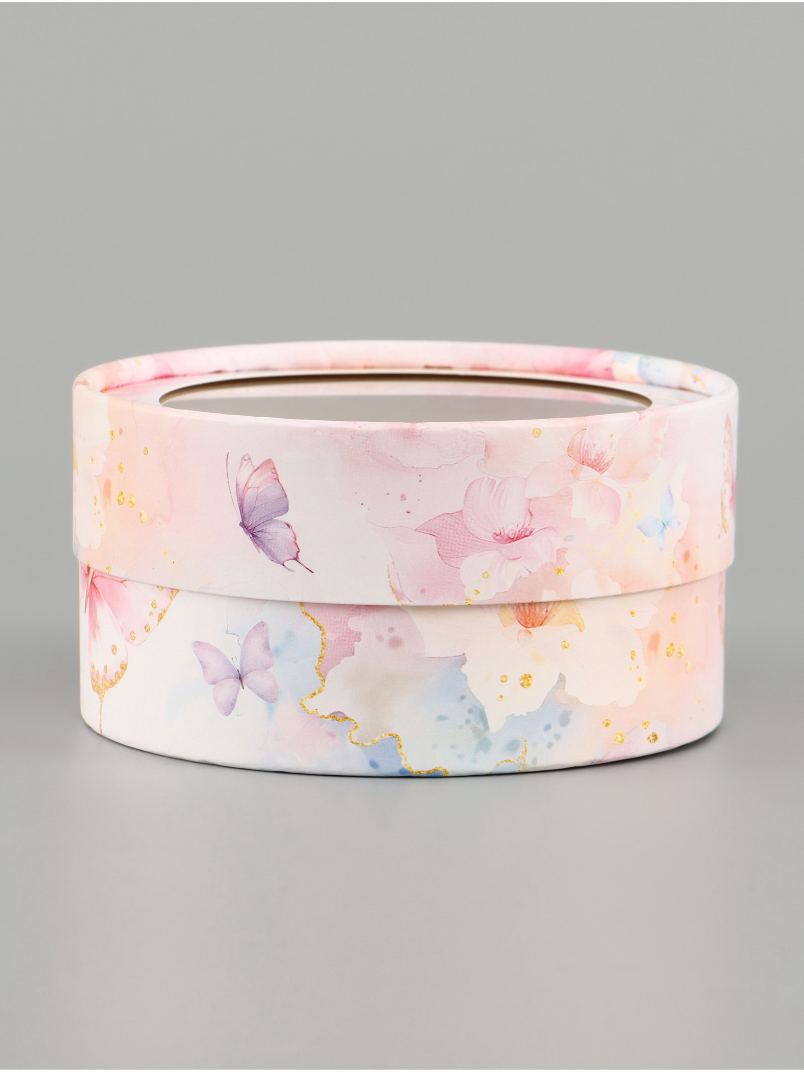 Коробка подарочная тубус с окном "Бабочки", 12x12x5 см, Дарите Счастье, Россия