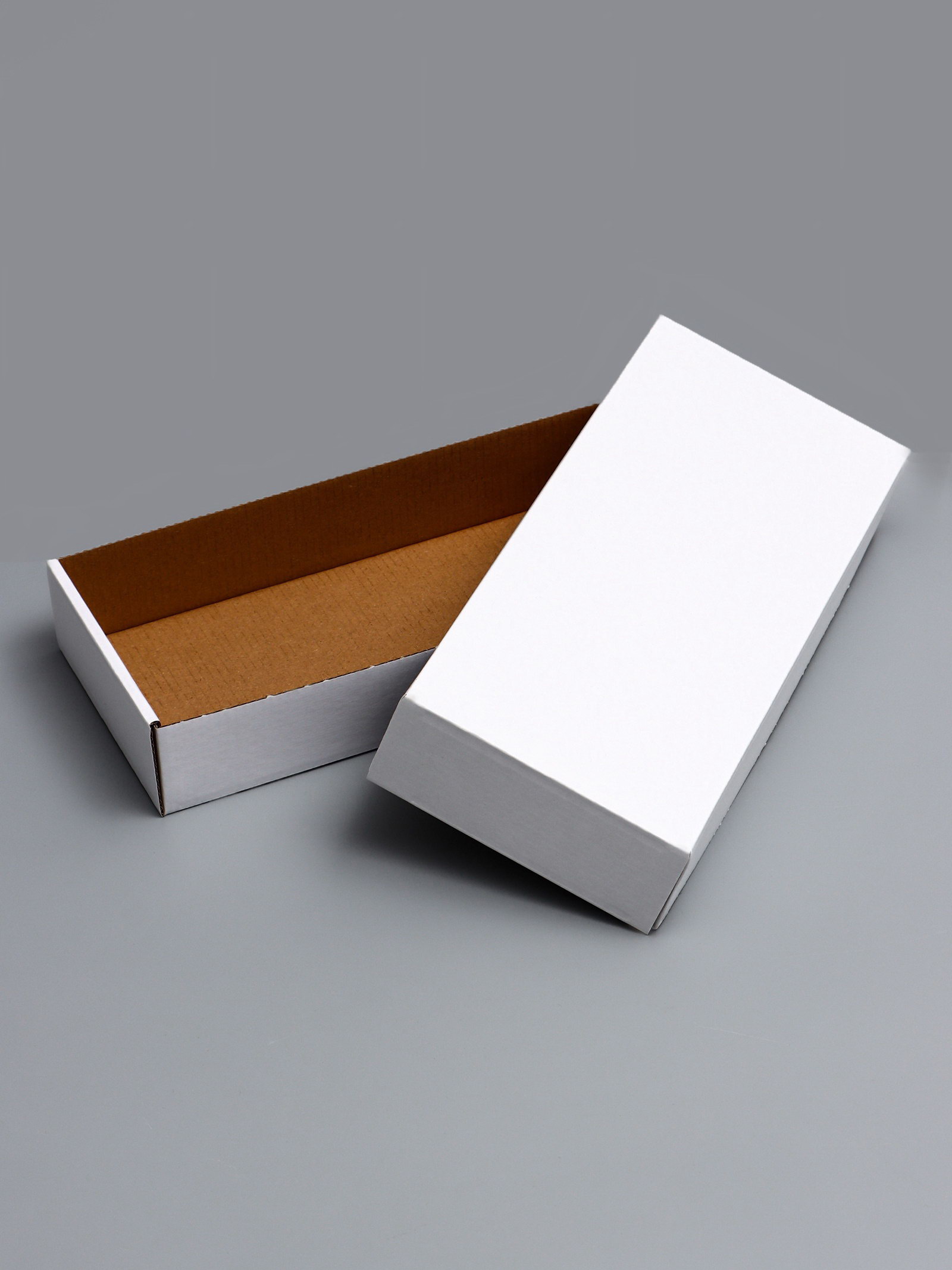 Коробка сборная без печати крышка-дно белая без окна 24x11.5x4.5 см, 1200 мл., Россия