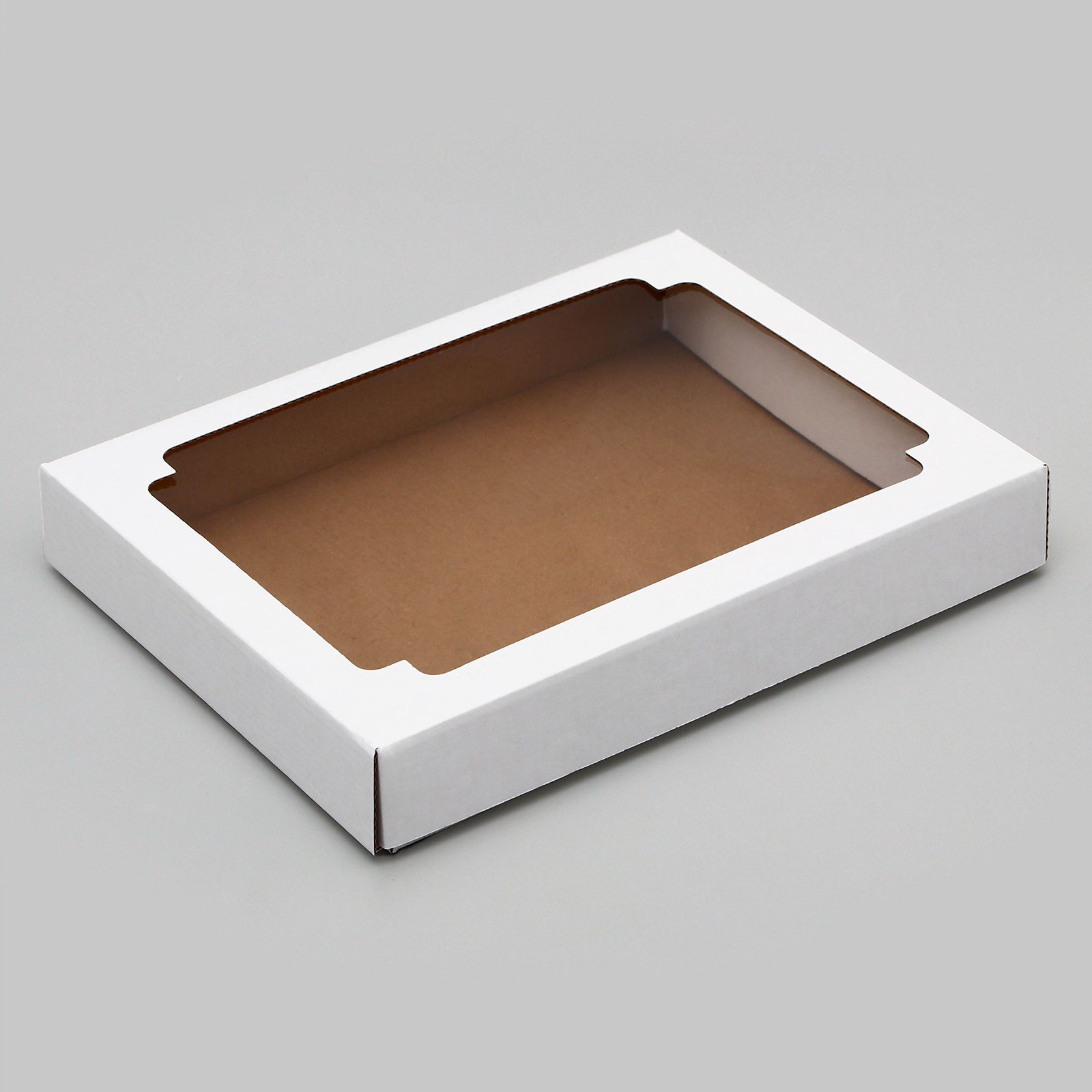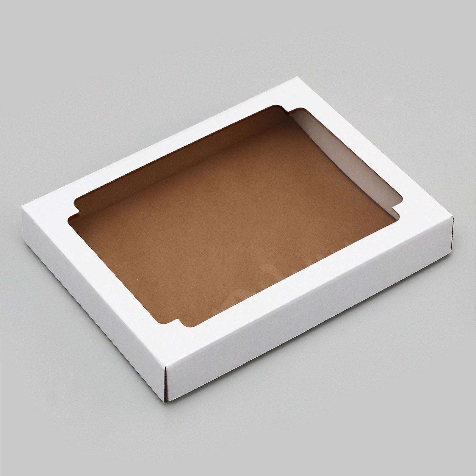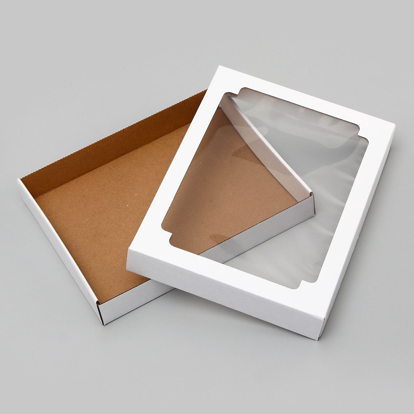 Коробка сборная, крышка-дно, с окном, белая, 26x21x4 см, 2100 мл., UPAK LAND, Россия