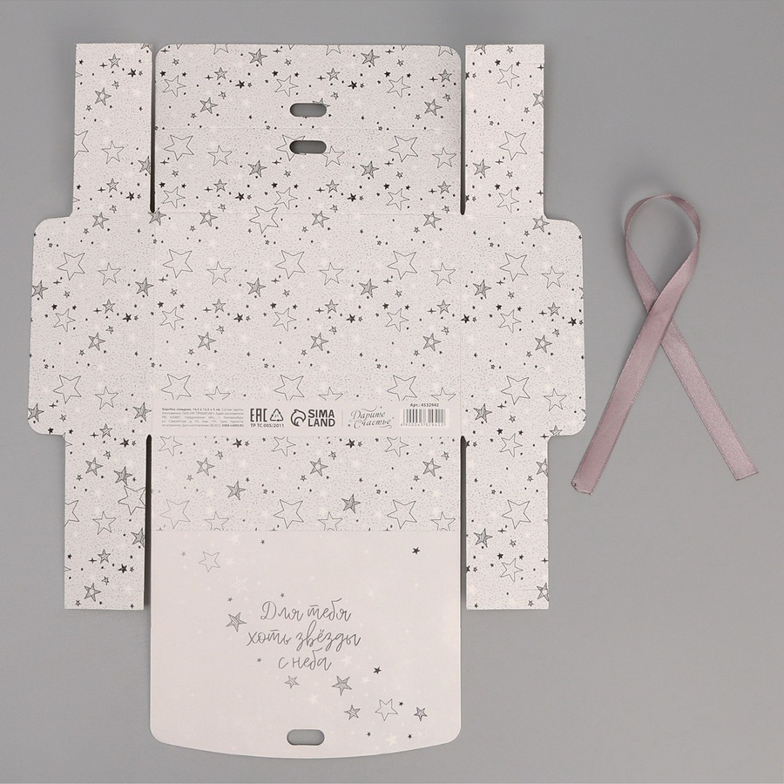 Коробка подарочная, упаковка, "Для тебя хоть звёзды", 16.5x12x5 см, БЕЗ ЛЕНТЫ, 5x16.5x12.5 см., Дарите Счастье, Россия