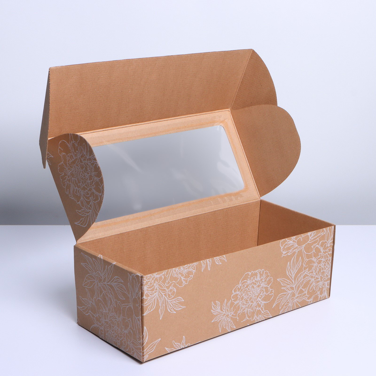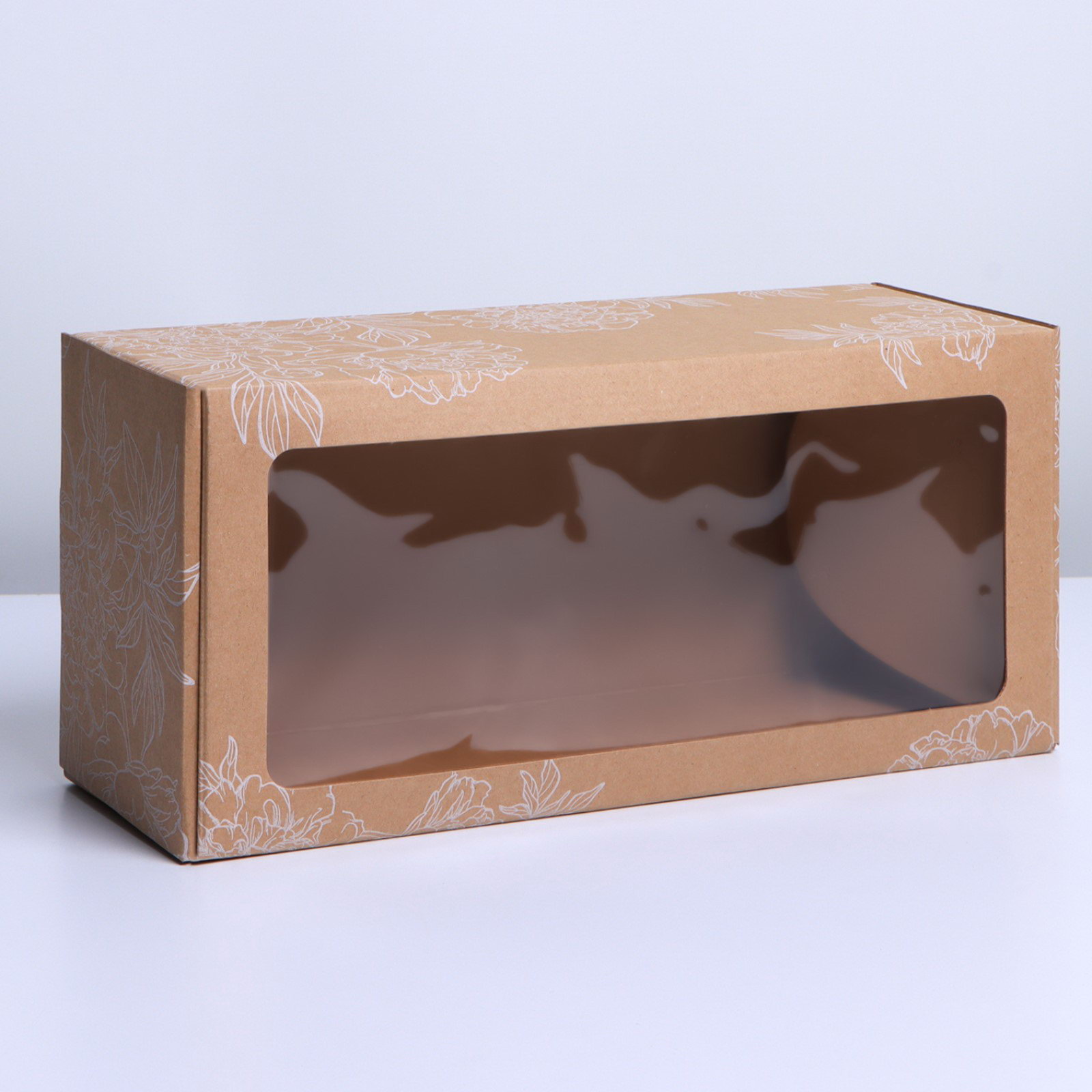Коробка подарочная складная с PVC-окном, упаковка, "Цветы ", 16x35x12 см, 6720 мл., Дарите Счастье, Россия