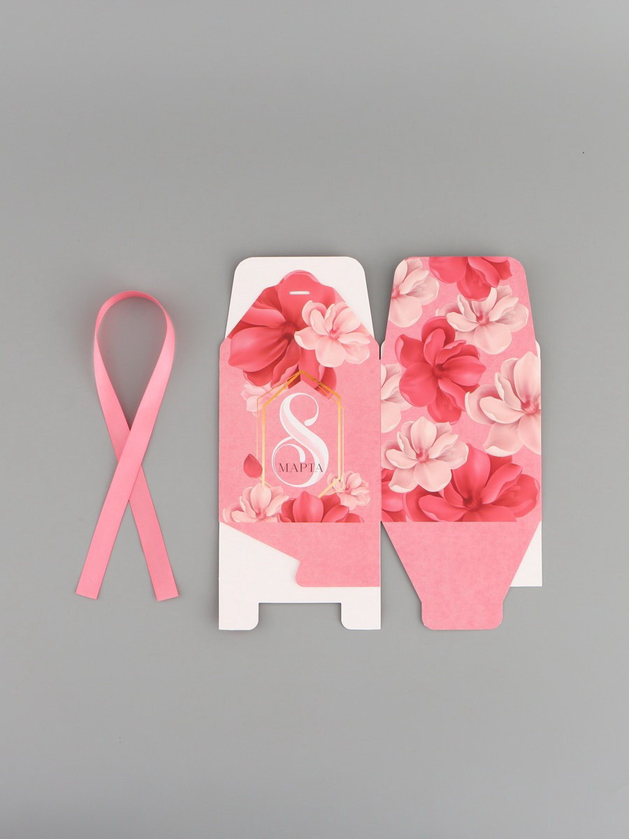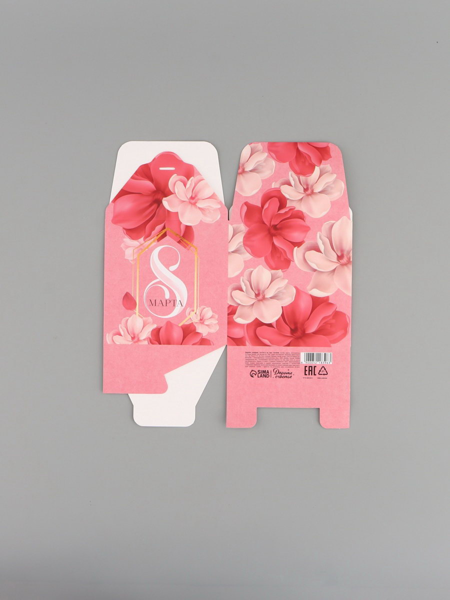 Коробка подарочная складная, упаковка, "8 марта", 12x12x12 см, 12x12x12 см., Дарите Счастье, Китай