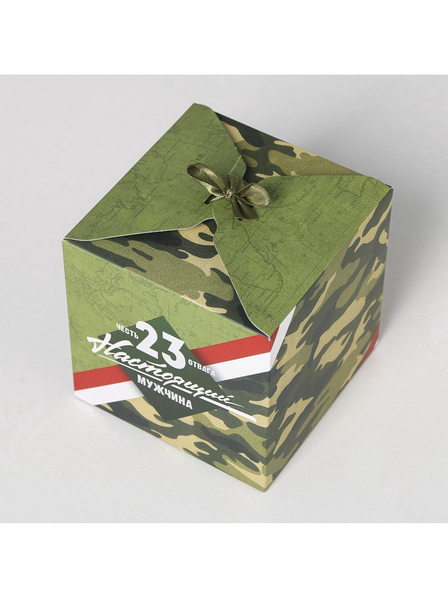 Коробка подарочная складная, упаковка, "Настоящему мужчине", 23 февраля, 12 x 12 x 12 см, 12x12x12 см., Дарите Счастье, Россия