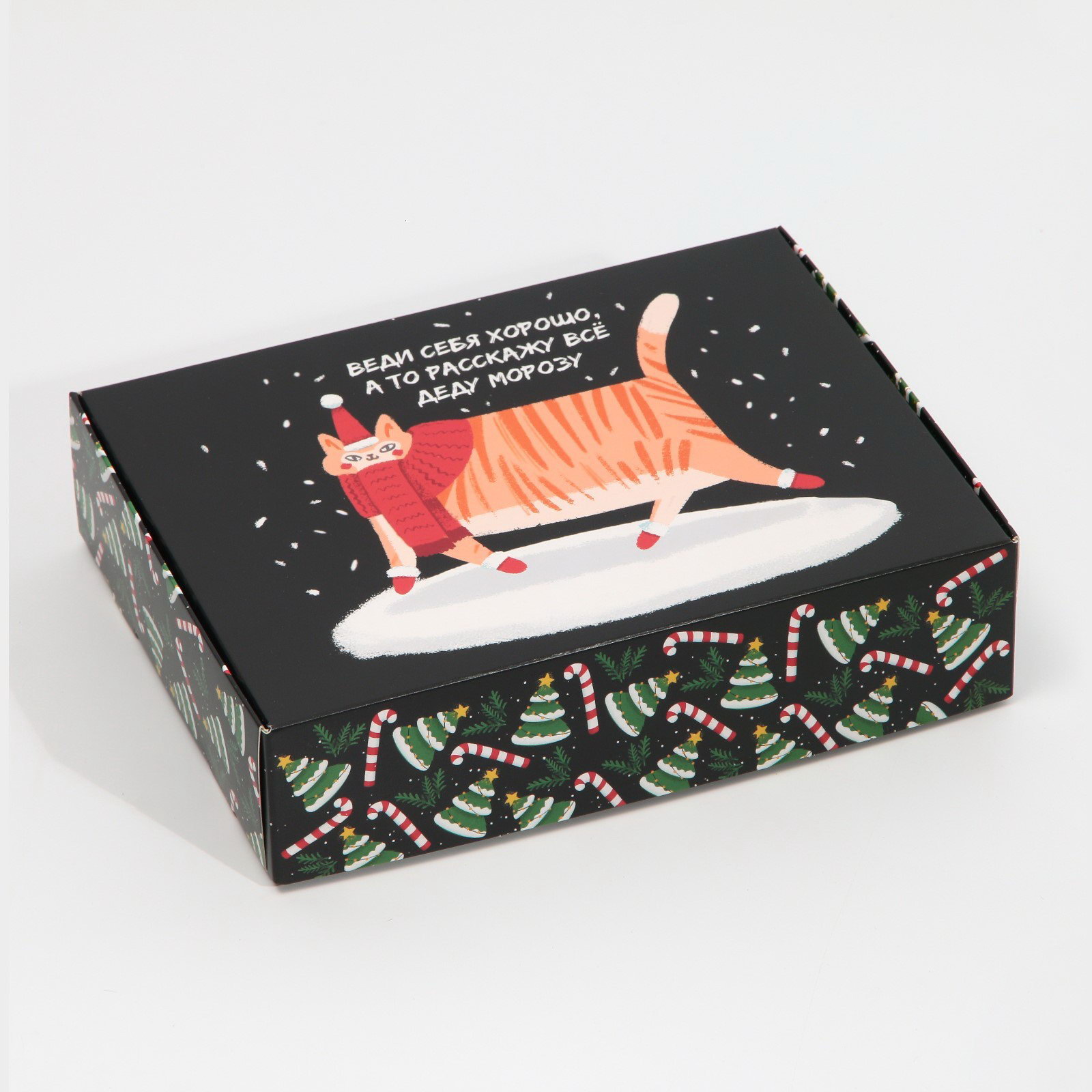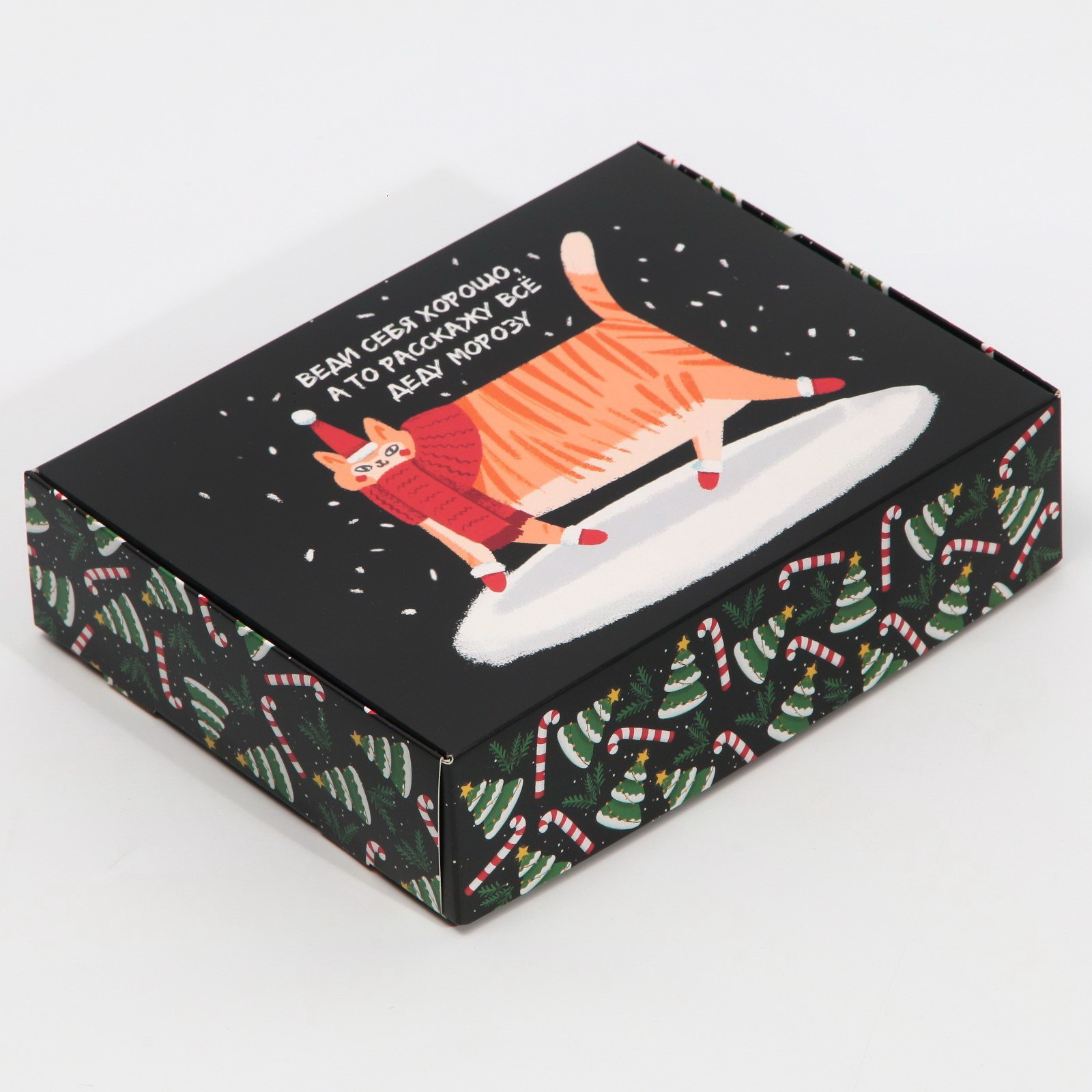 Коробка подарочная новогодняя складная "Веди себя хорошо", 21x15x5 см, Новый год, Дарите Счастье, Россия