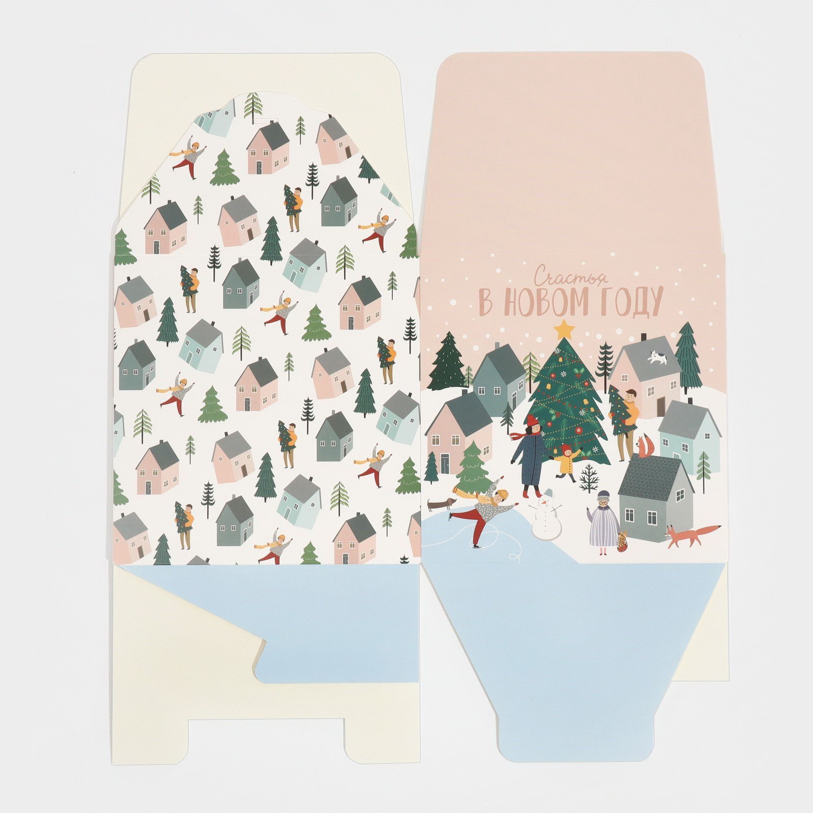 Коробка подарочная новогодняя складная "Город новогодний", 18 x 18 x 18 см, Новый год, 18x18x18 см., Дарите Счастье, Китай