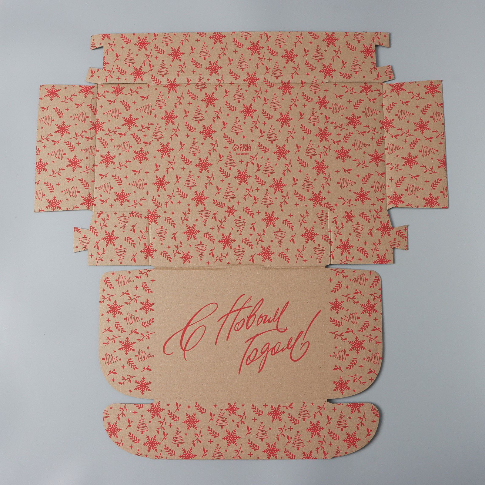 Коробка новогодняя складная "С Новым годом", бурый, 27x21x9 см, Дарите Счастье, Россия