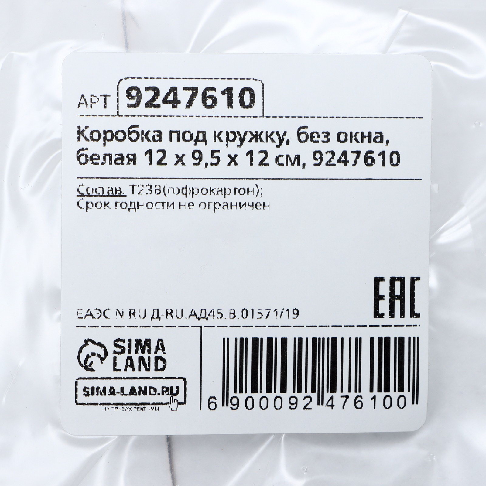 Коробка под кружку, без окна, белая 12x9.5x12 см, Россия