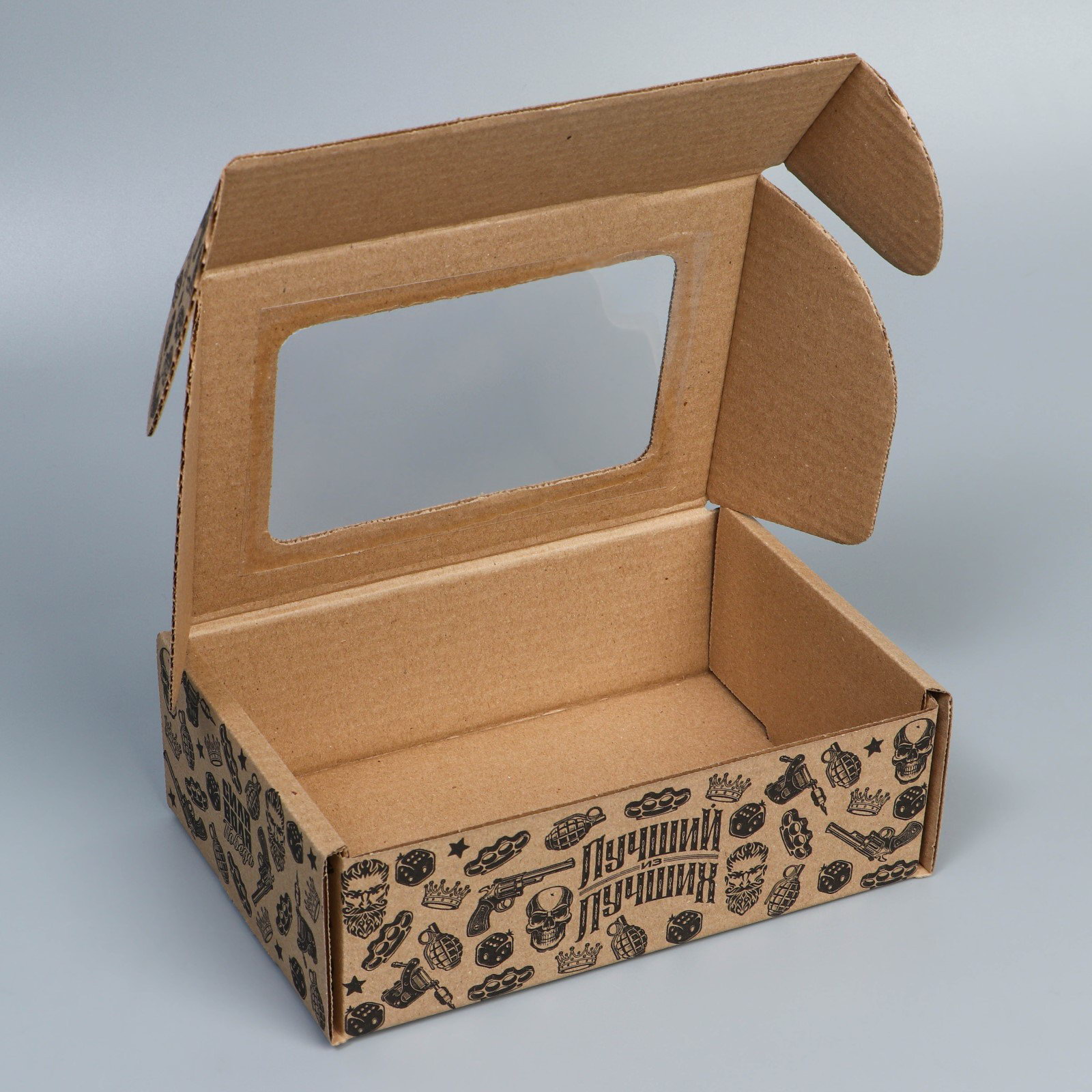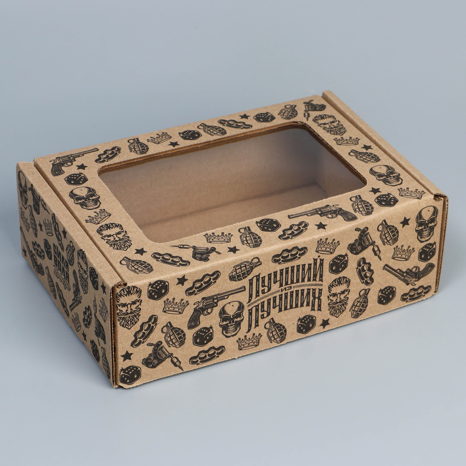 Коробка подарочная сборная с окном, упаковка, "Лучший из лучших", бурый, 24x8x16 см, Дарите Счастье, Россия