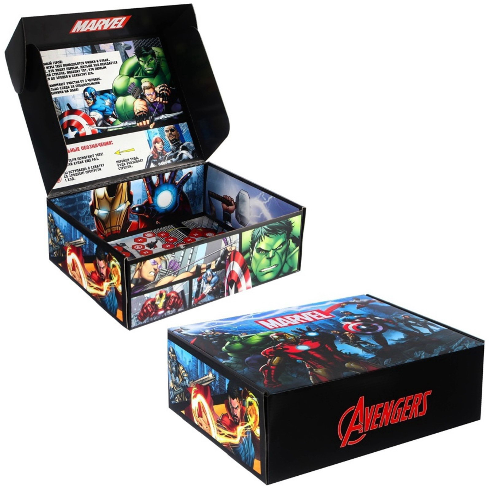 Подарочная коробка складная с игрой внутри, 28 x 21 x 9 см, Мстители, 25x32x2 см., MARVEL, Китай