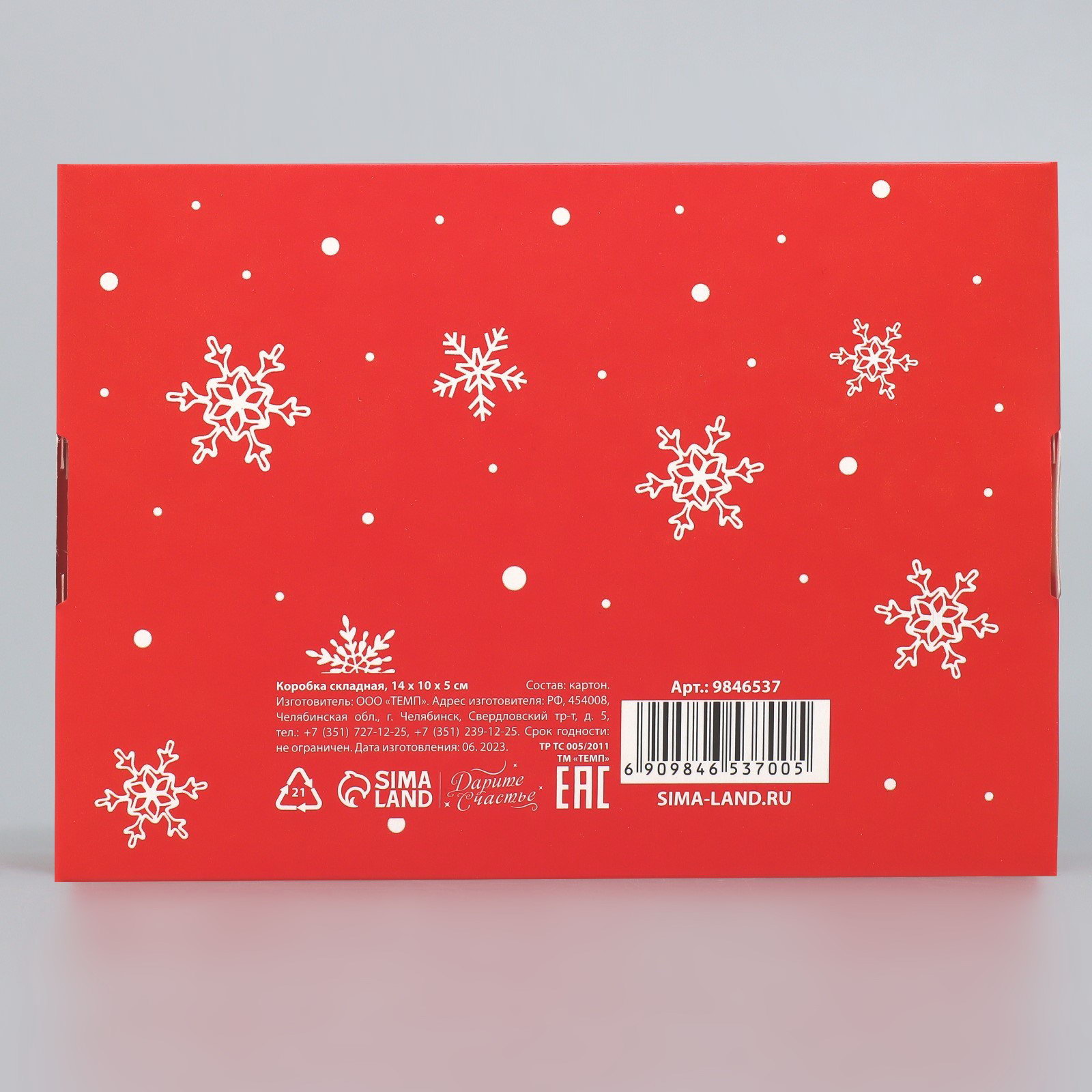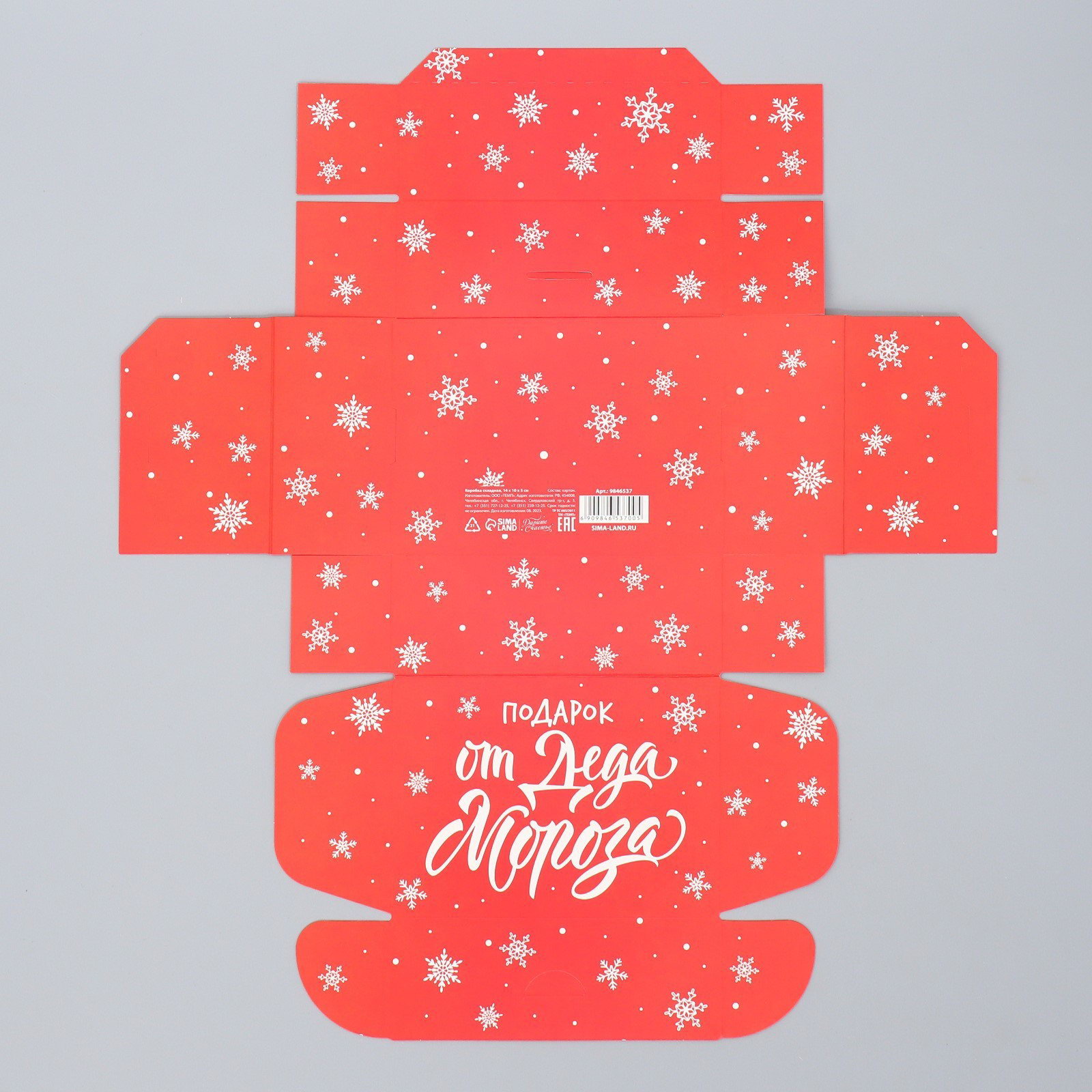 Размер упаковки: 21.5 x 24 x 0.2 см. Длина, см: 14 Ширина, см: 10 Высота, см: 5 Крышка-дно: Нет Окошко: Нет Окошко: Нет tnved: 4819200000 Цвет: Красный Температурное ограничение: Нет Размер: Малый (11-17 см) см Символ года: Нет Вид: Складные коробки Тематика: Новогодняя Тематика праздника: Новый год Плотность, г/?2: 250 Форма: Прямоугольная | ||