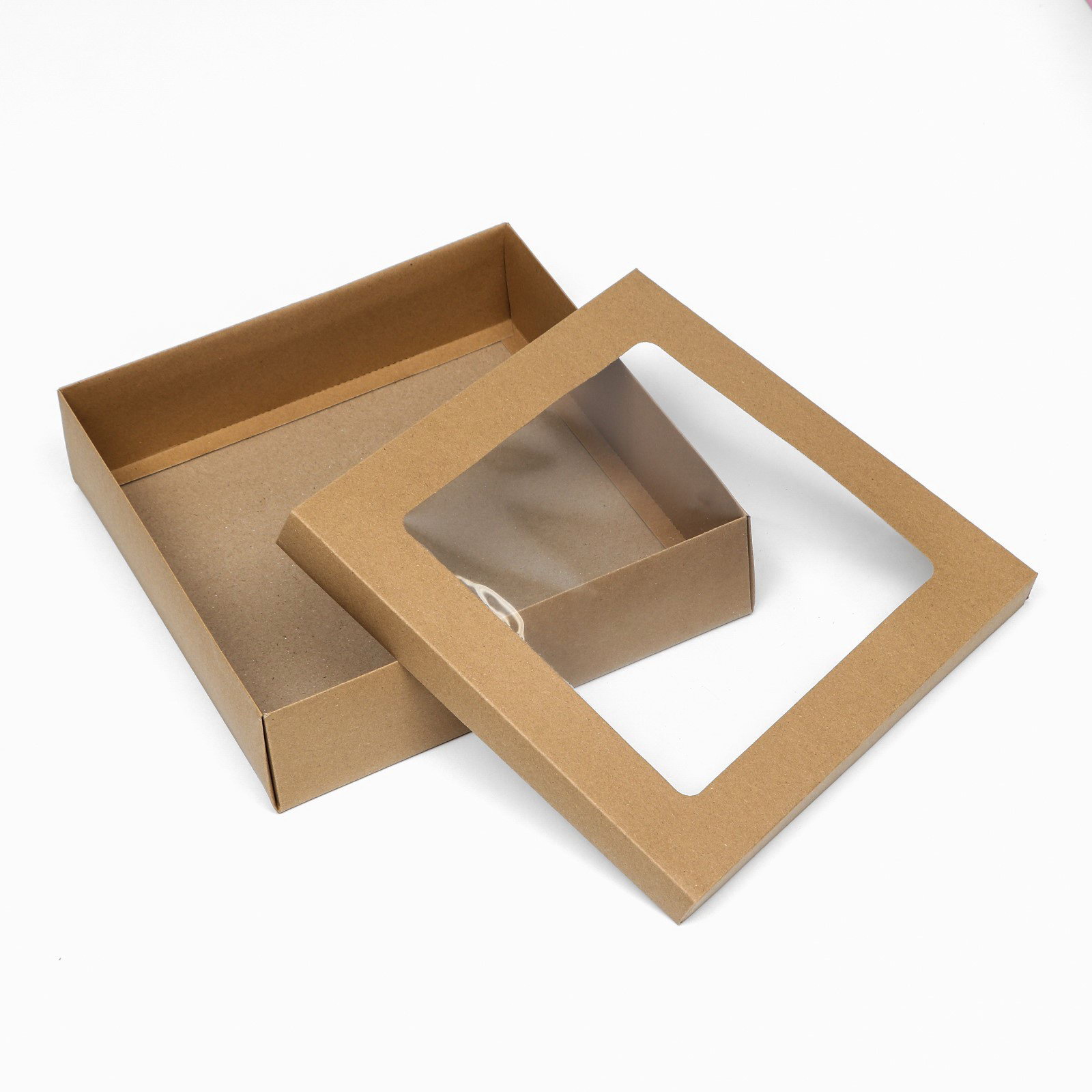 Коробка подарочная складная, упаковка, крышка - дно, с окном, крафт, 30x30x8 см, 30x30x8 см., UPAK LAND, Китай