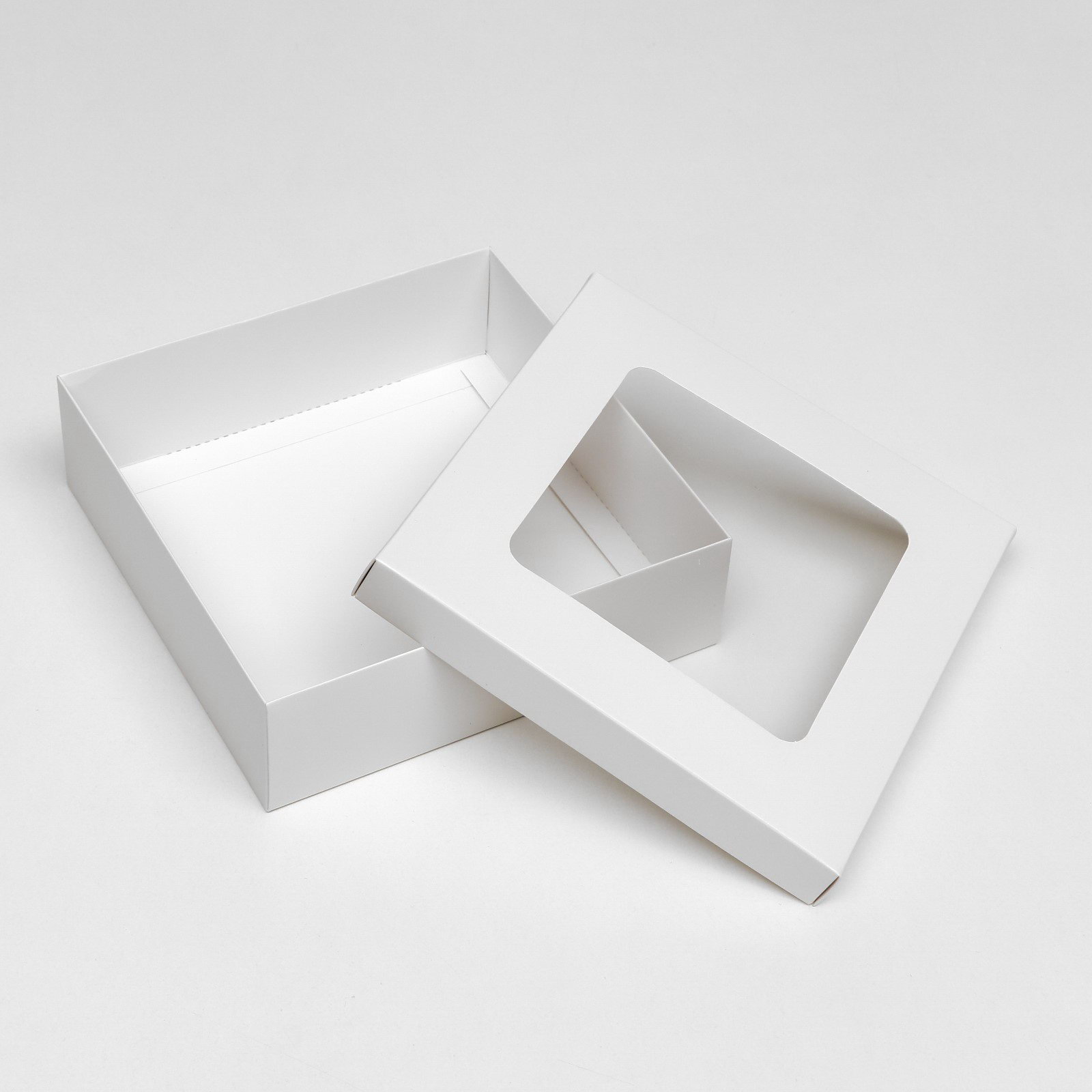 Коробка подарочная складная, упаковка, крышка-дно, с окном, белая, 20x20x6 см, UPAK LAND, Китай