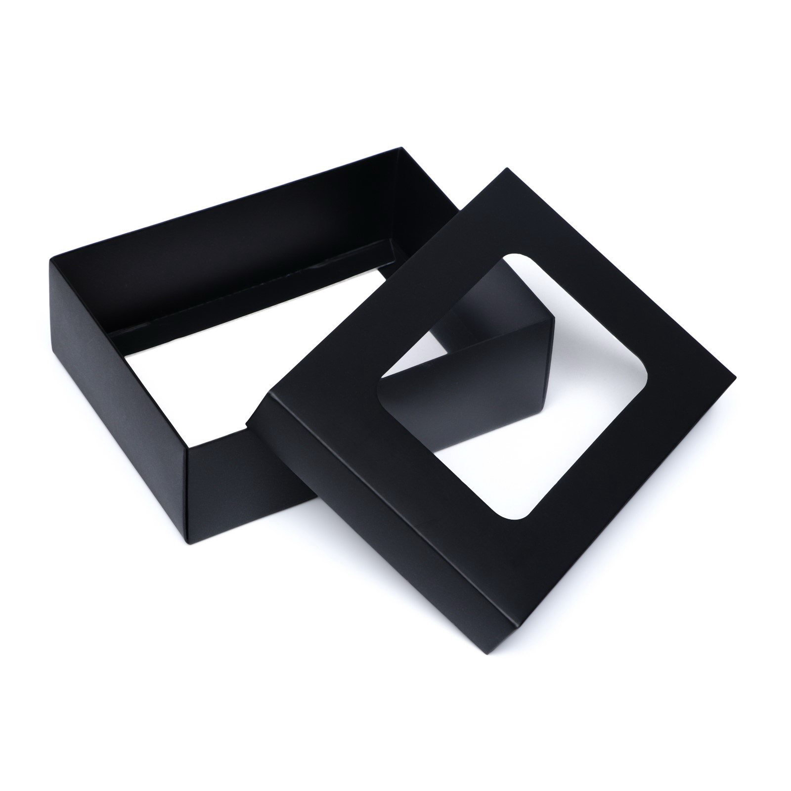 Коробка подарочная складная, упаковка, крышка - дно, с окном, чёрная, 16.5x12.5x5.2 см, UPAK LAND, Китай