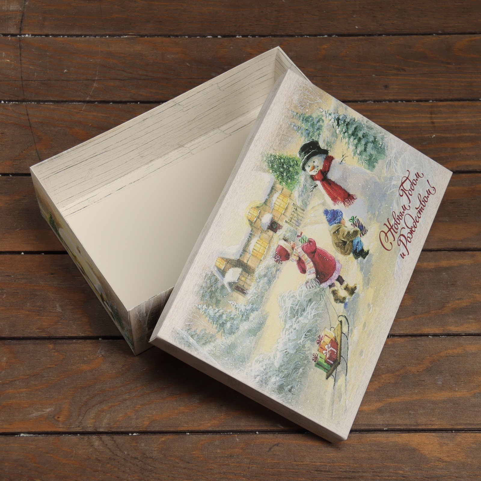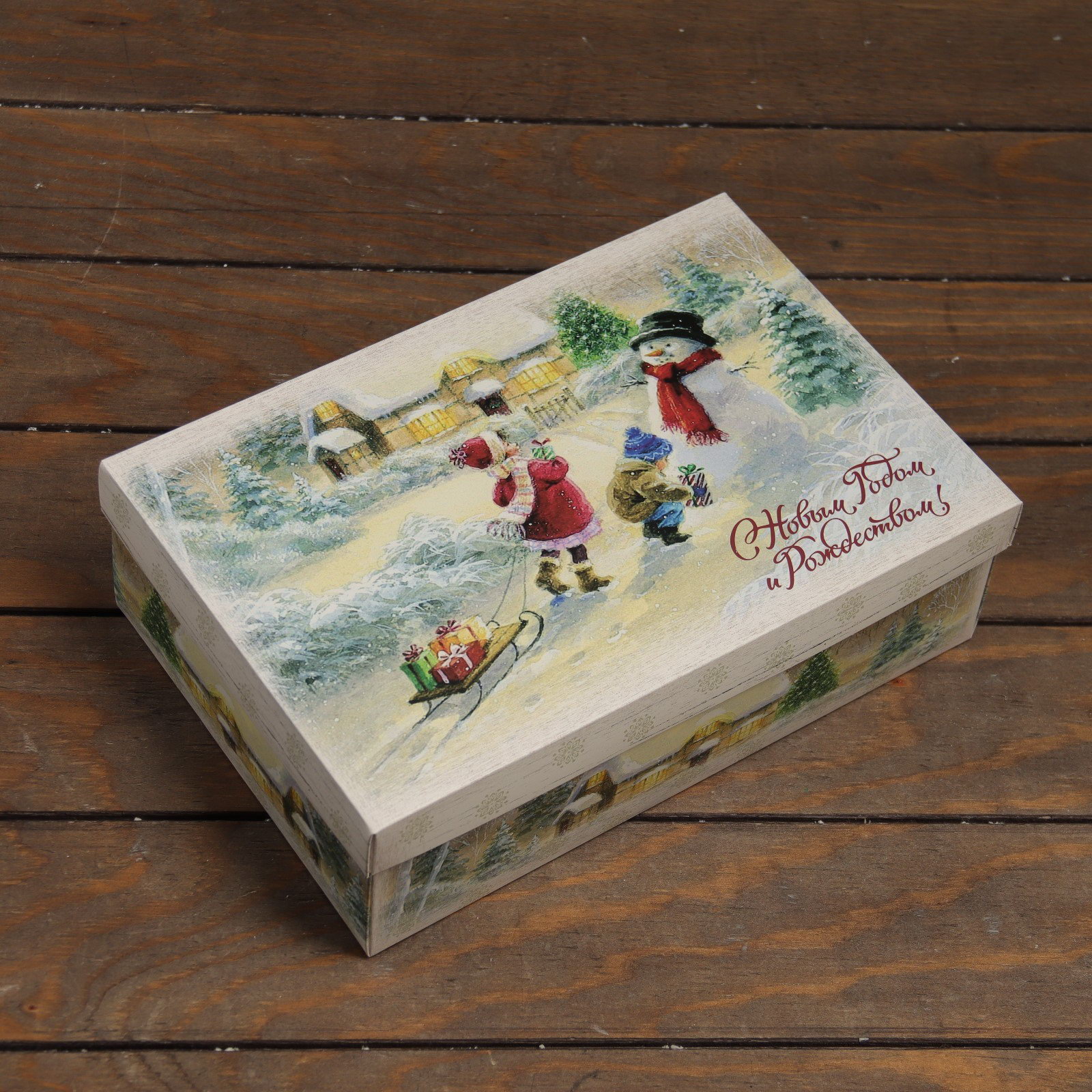 Коробка подарочная новогодняя складная, крышка-дно "С Новым Годом и Рождеством" 30x20x9 см, Дарите Счастье, Россия