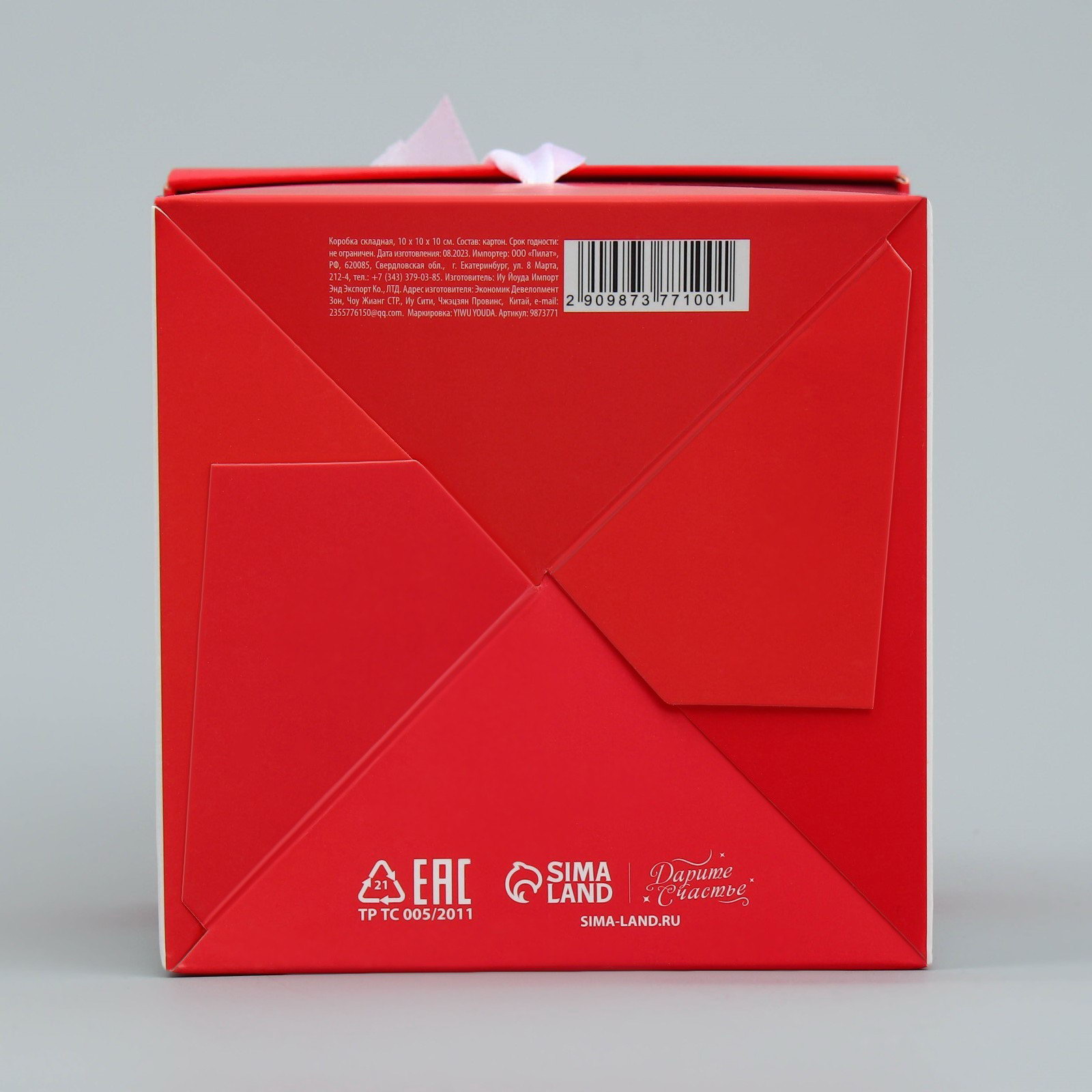 Цвет: Белый, Красный Форма: Квадратная, Куб Размер упаковки: 26 x 25.5 x 0.5 см. Ширина, см: 10 Высота, см: 10 Длина, см: 10 Крышка-дно: Да Окошко: Нет Окошко: Нет tnved: 4819200000 Дизайн: С рисунком, надписью Допустимый вес вложения, г: 250 Плотность, г/?2: 250 Размер: Мини (до 10 см) см Вид: Складные коробки Тематика: Любовь Символ года: Нет Тематика праздника: 14 Февраля | ||