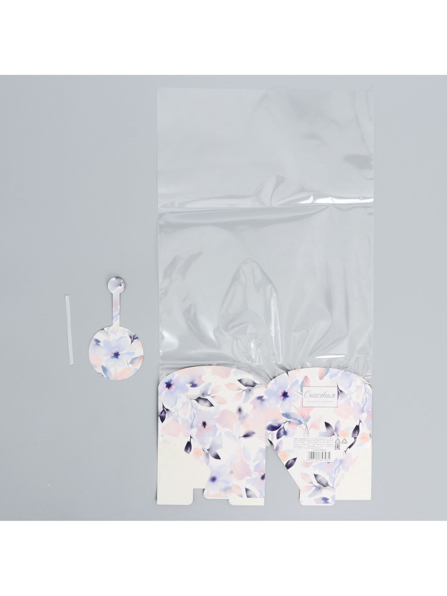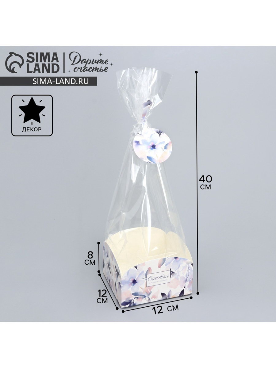 Пакет подарочный с коробкой, упаковка, "Цветы", 12 x 12 x 40 см, Дарите Счастье, Россия