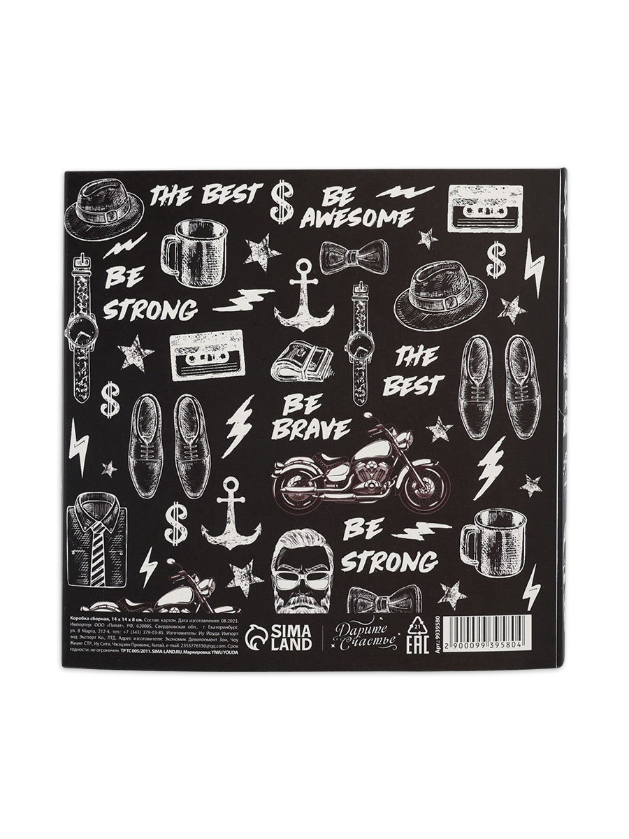 Коробка-фоторамка подарочная складная, упаковка, "Мужская", 14 x 14 x 8 см, 14x14x8 см., Дарите Счастье, Китай