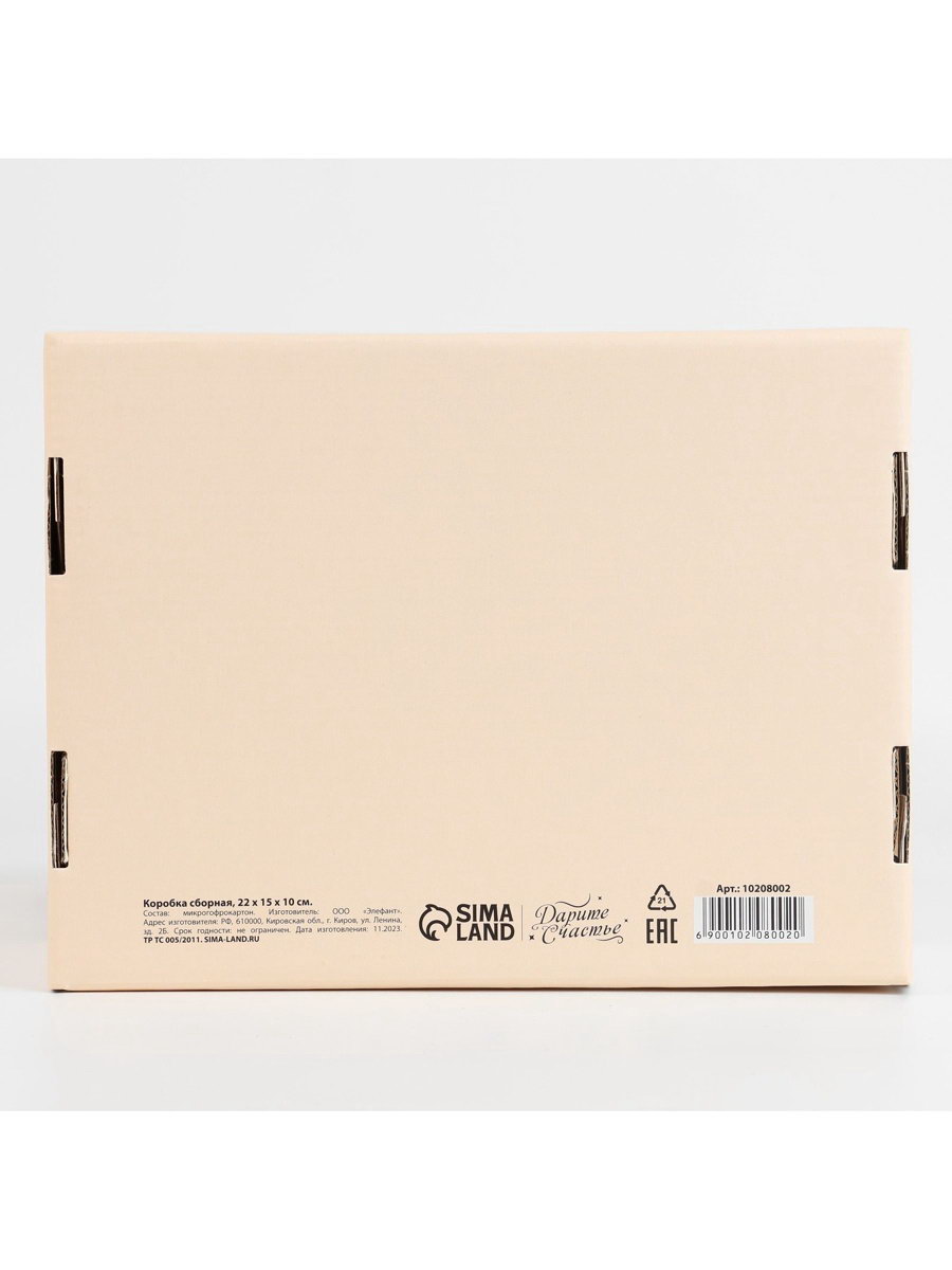 Коробка подарочная складная, упаковка, "Бежевая", 22 x 16.5 x 10 см, Дарите Счастье, Россия