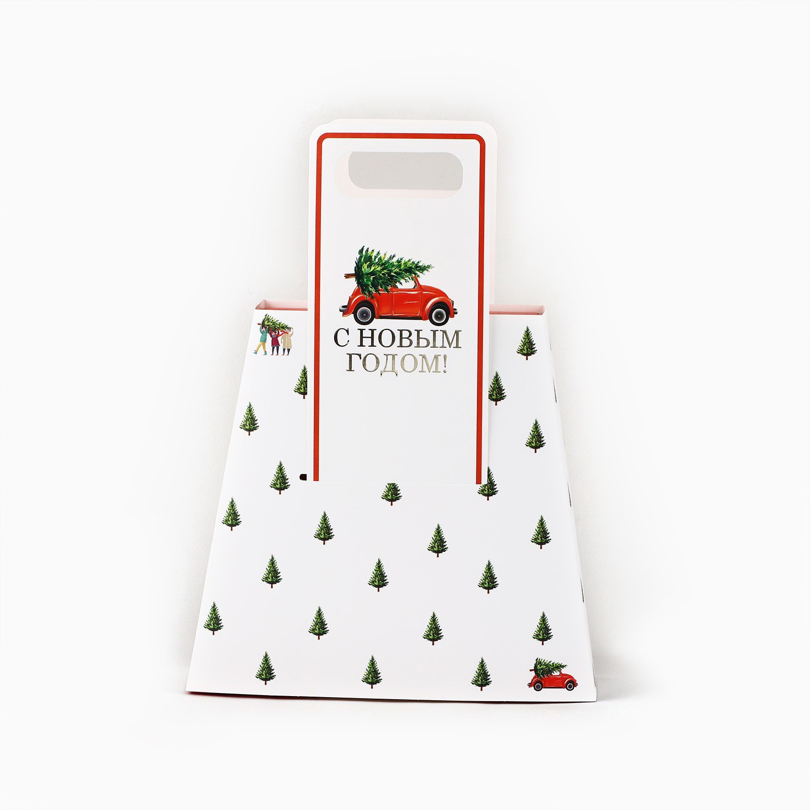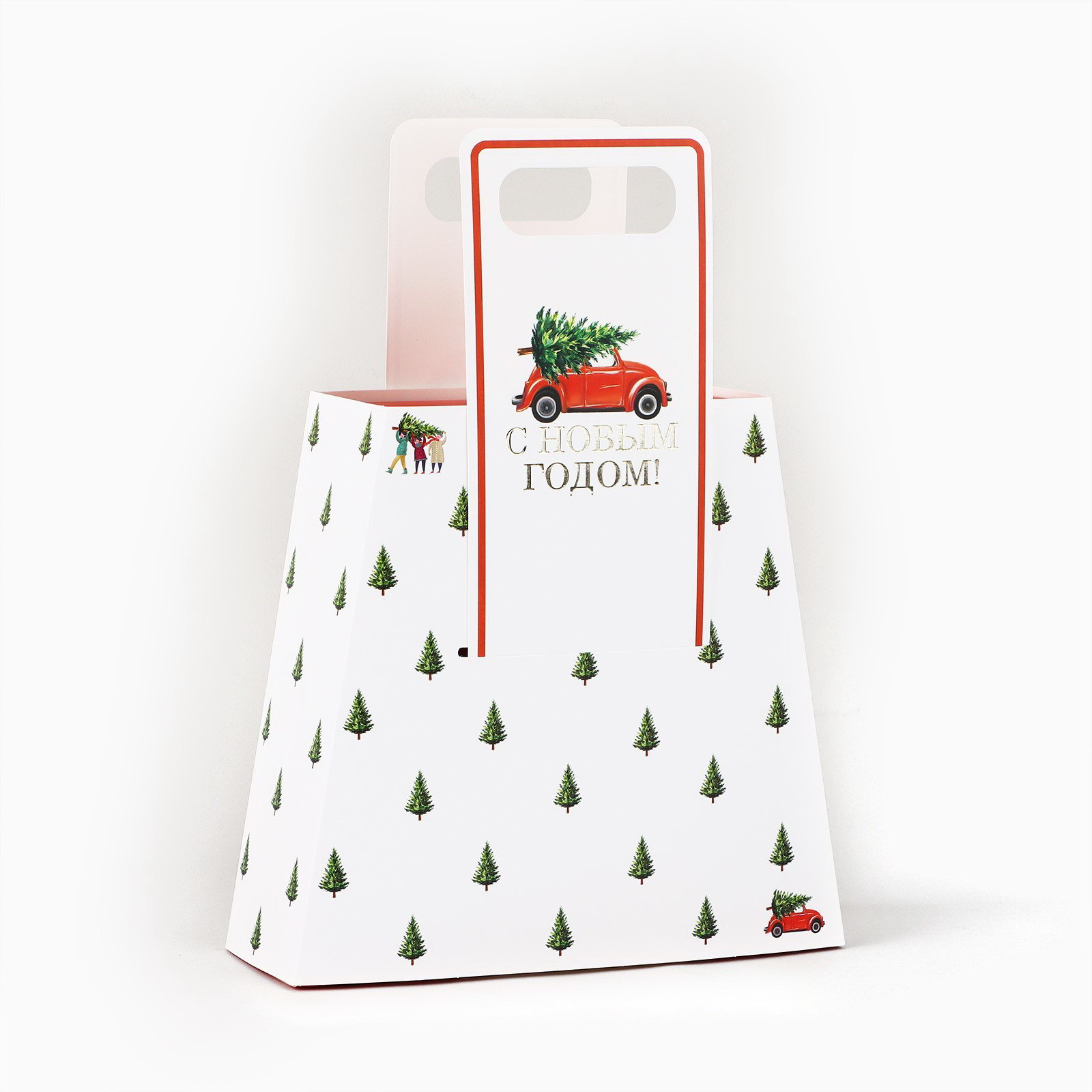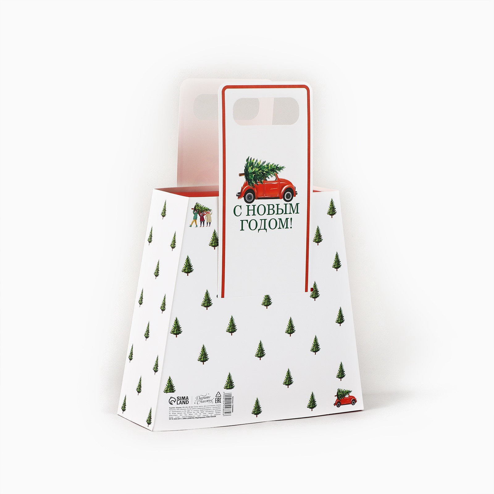 Коробка новогодняя складная с ручками "С Новым годом!" 23 x 8 x 32 см, 8x23x32 см., Дарите Счастье, Китай