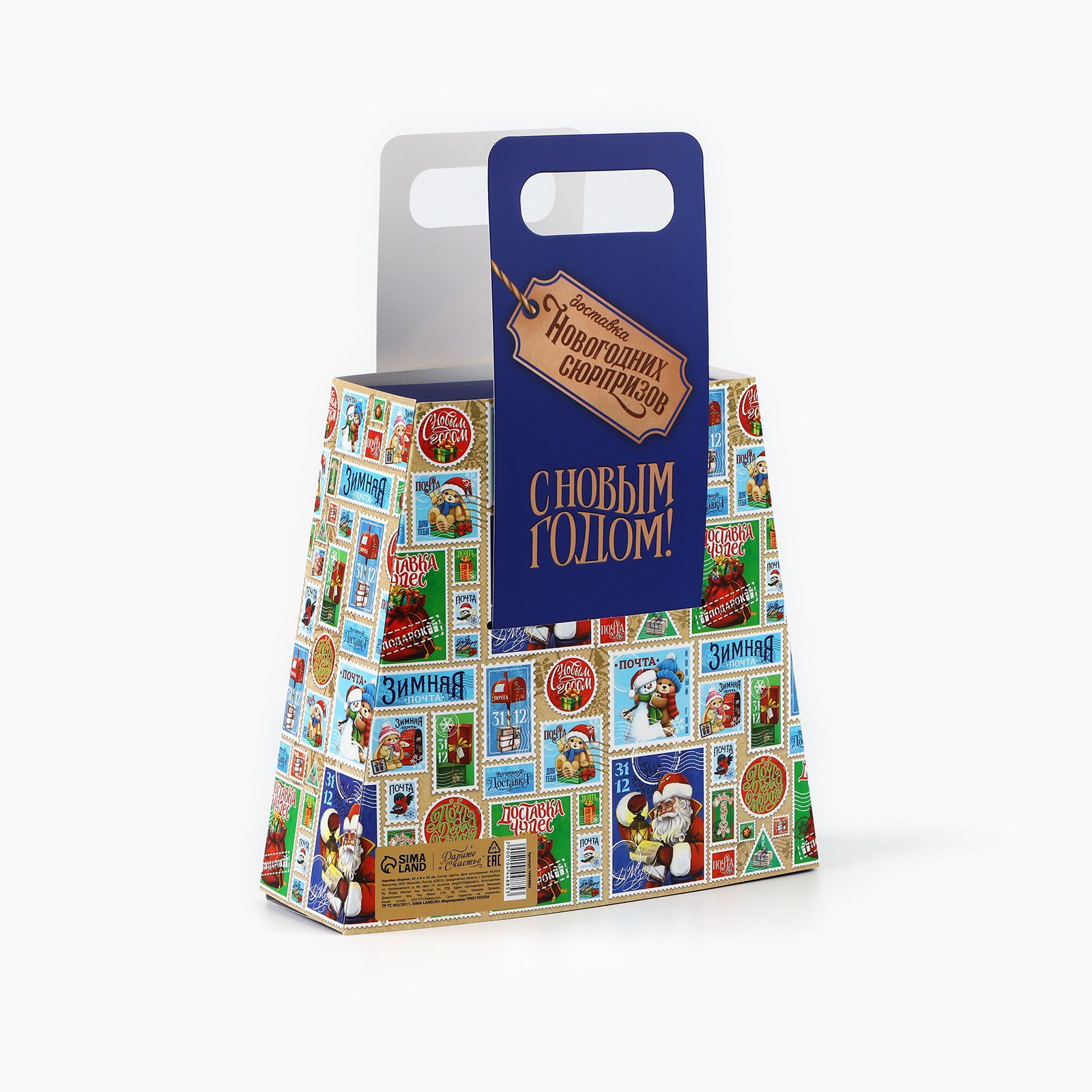 Коробка новогодняя складная с ручками "Новогодняя почта" 23 x 8 x 32 см, 8x23x32 см., Дарите Счастье, Китай