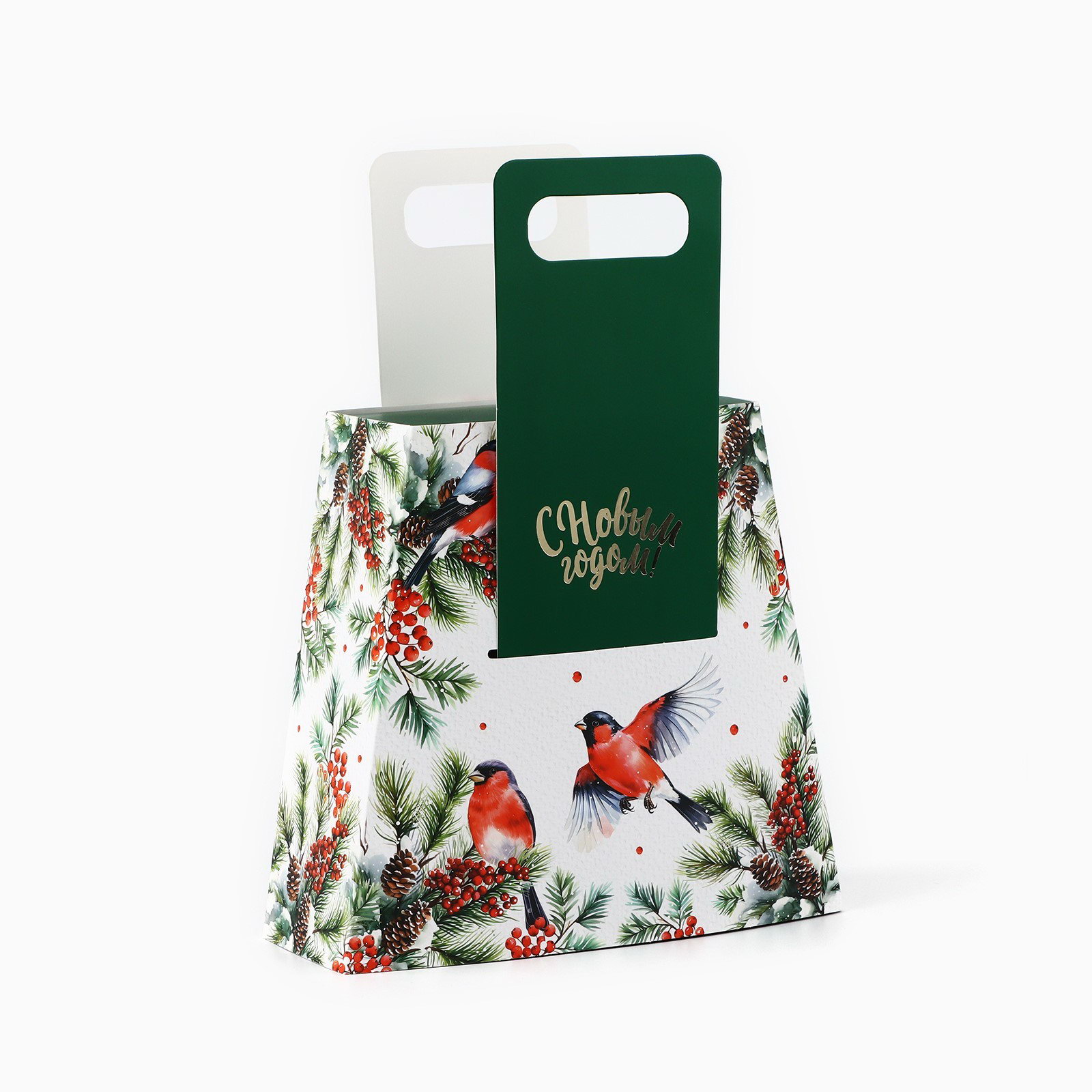 Коробка новогодняя складная с ручками "Снегири" 23 x 8 x 32 см, 8x23x32 см., Дарите Счастье, Китай