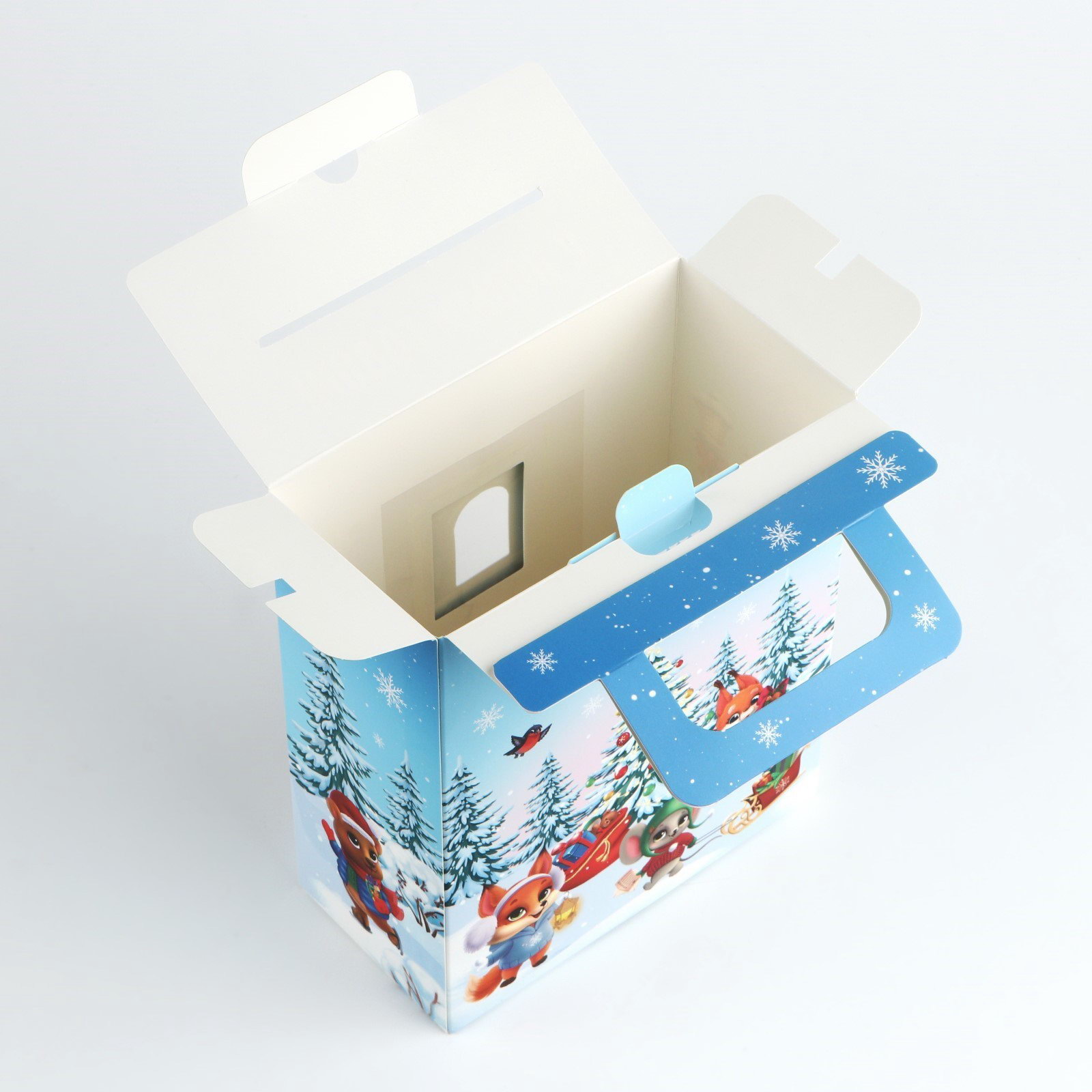 Подарочная коробка новогодняя новогодняя складная с 3D эффектом "Домик новогодний", 18 x 15 x 7.5 см, Дарите Счастье, Китай