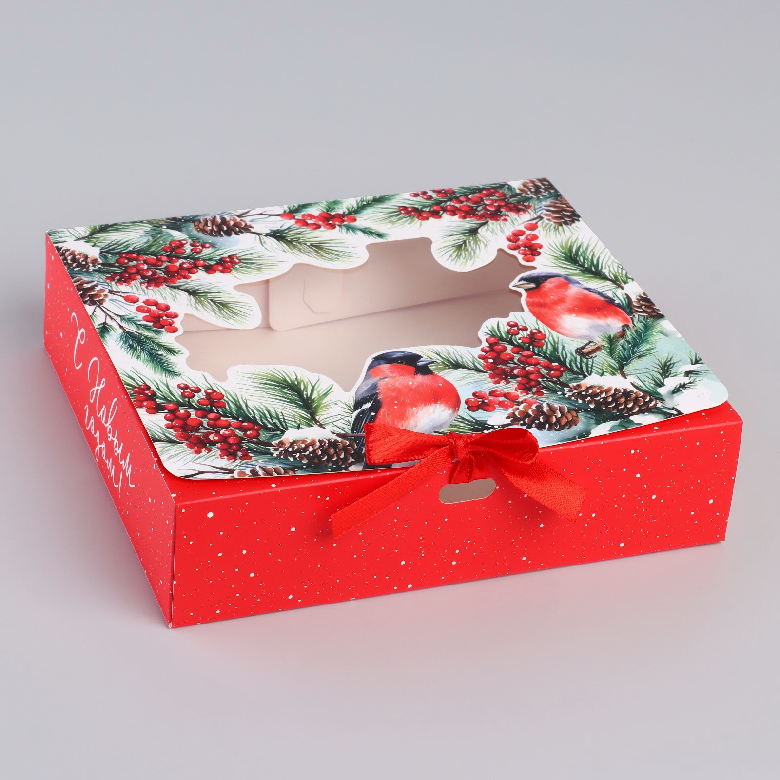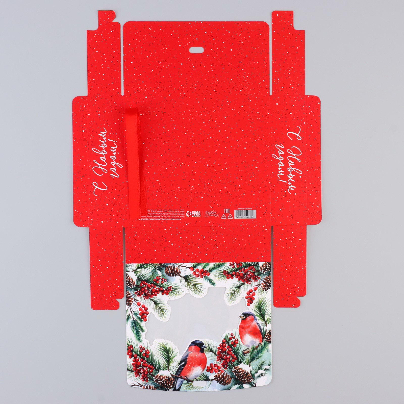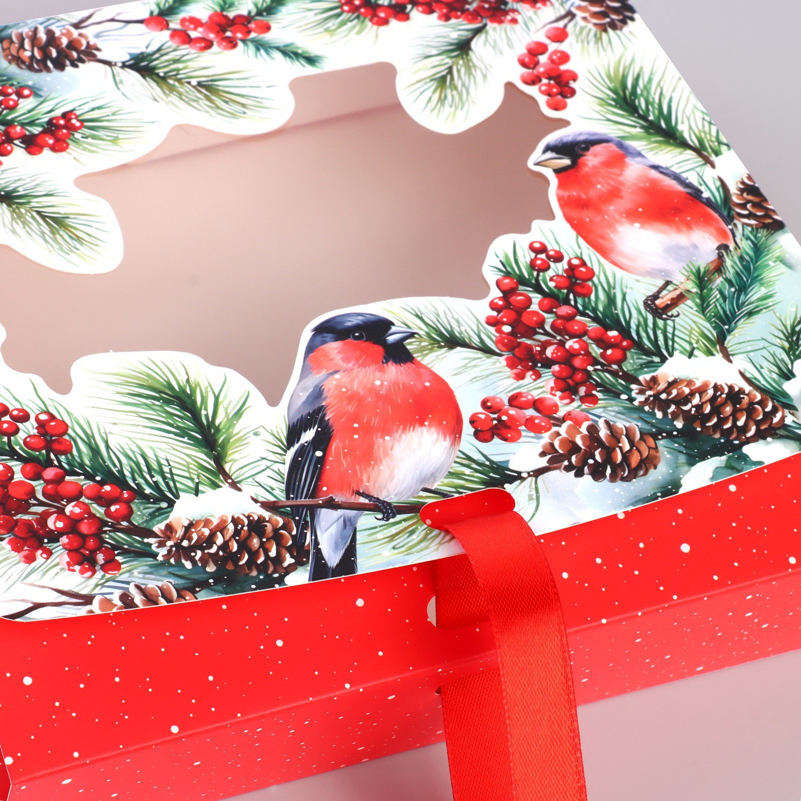 Коробка новогодняя складная "Снегири на ветке" 20 х18 x 5 см, 18x20x5 см., Дарите Счастье, Китай