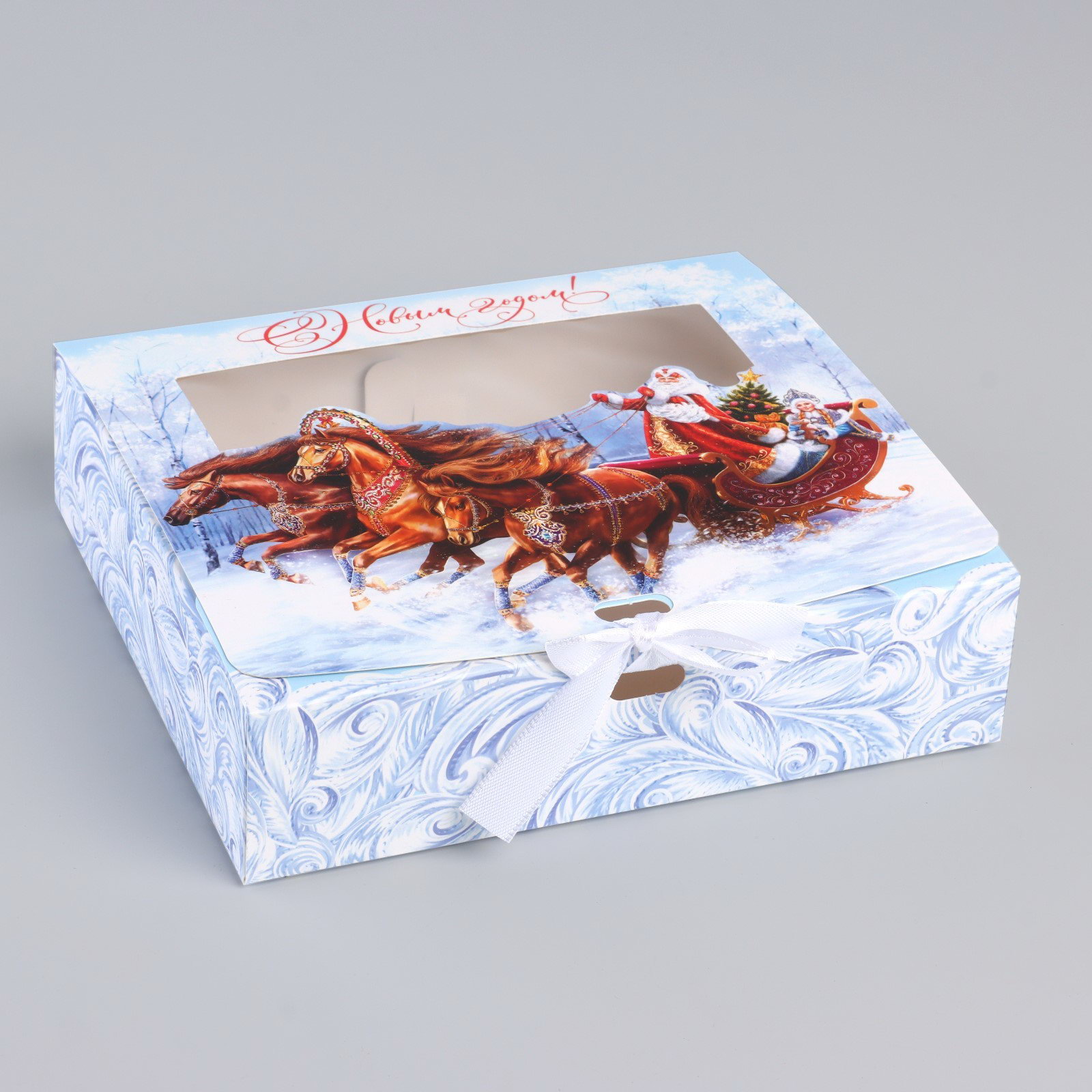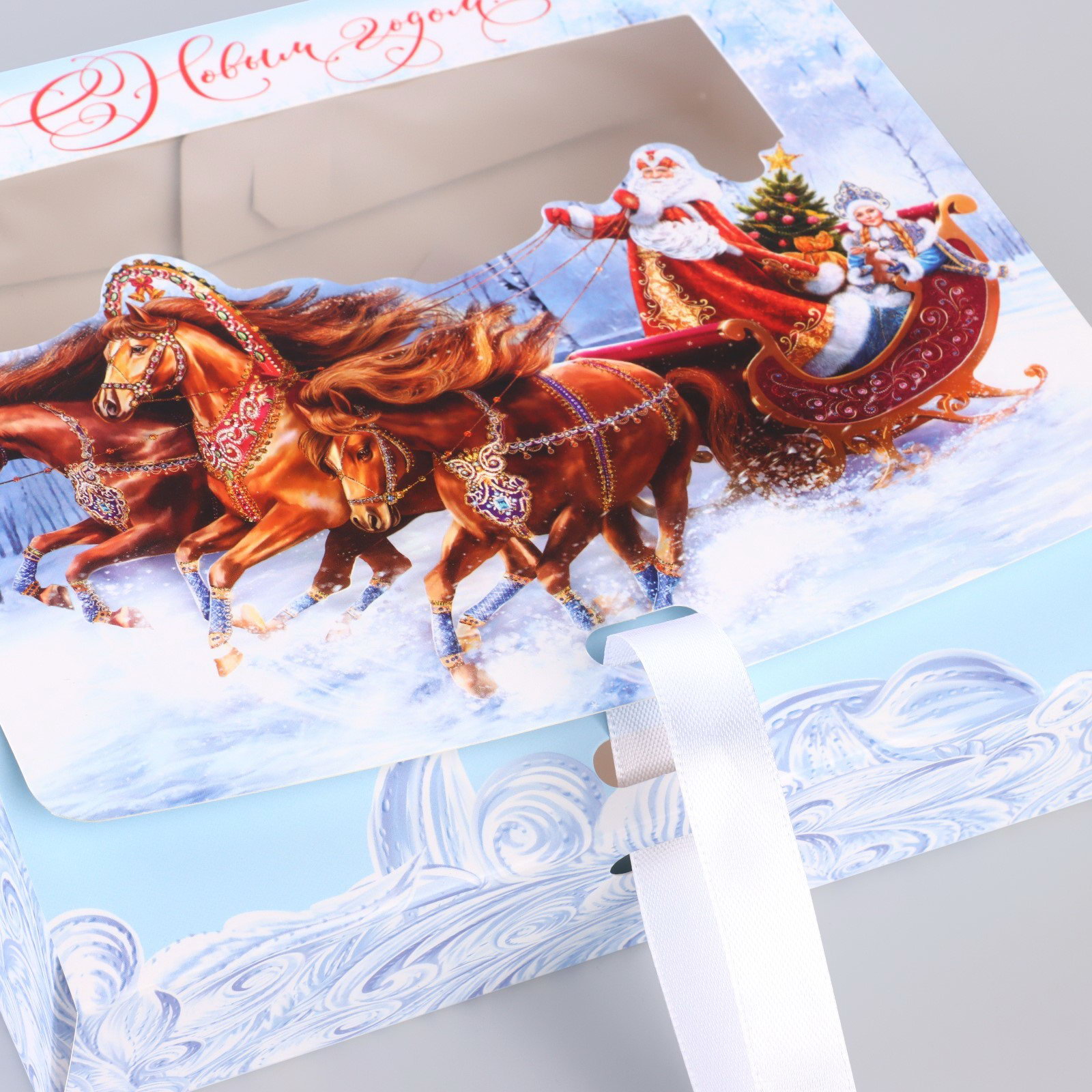 Коробка складная "Новый год 2026: Тройка лошадей" 20 x 18 x 5 см, 18x20x5 см., Дарите Счастье, Китай