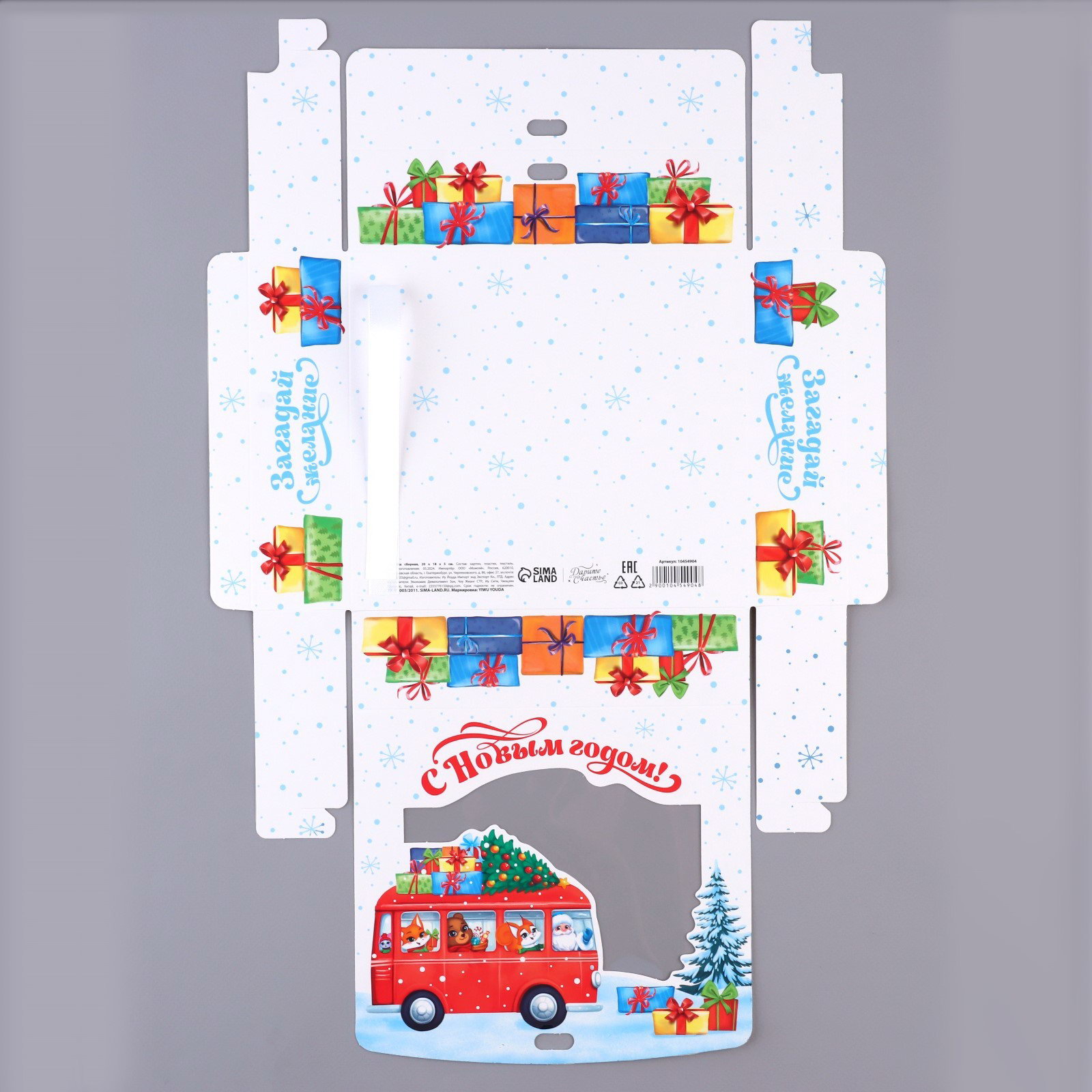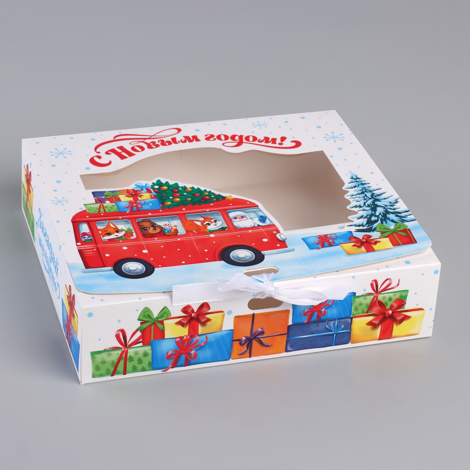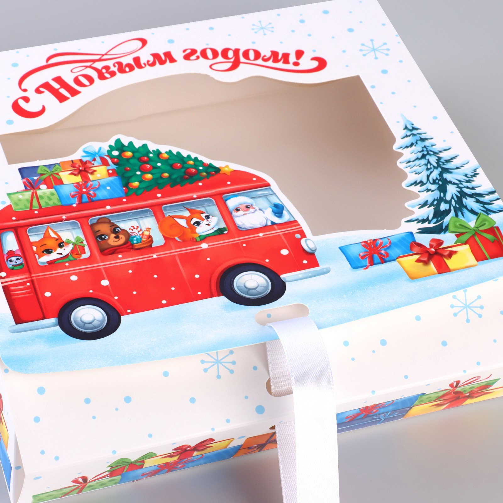 Коробка новогодняя складная "Новогодний автобус" 20 х18 x 5 см, 18x20x5 см., Дарите Счастье, Китай
