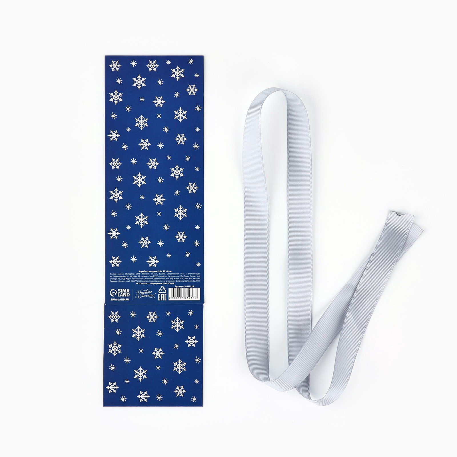 Коробка подарочная новогодняя складная "Снежинки", тиснение, 20 x 20 x 8 см, Дарите Счастье, Китай