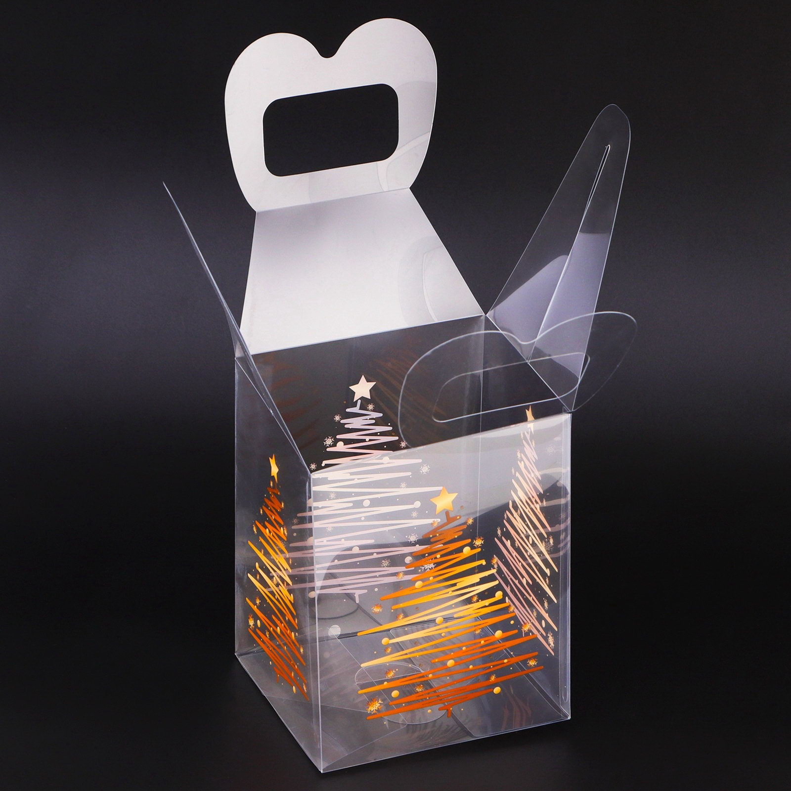 Коробка подарочная новогодняя складная ПВХ "Ёлочка" 12x12x15 см, UPAK LAND, Китай