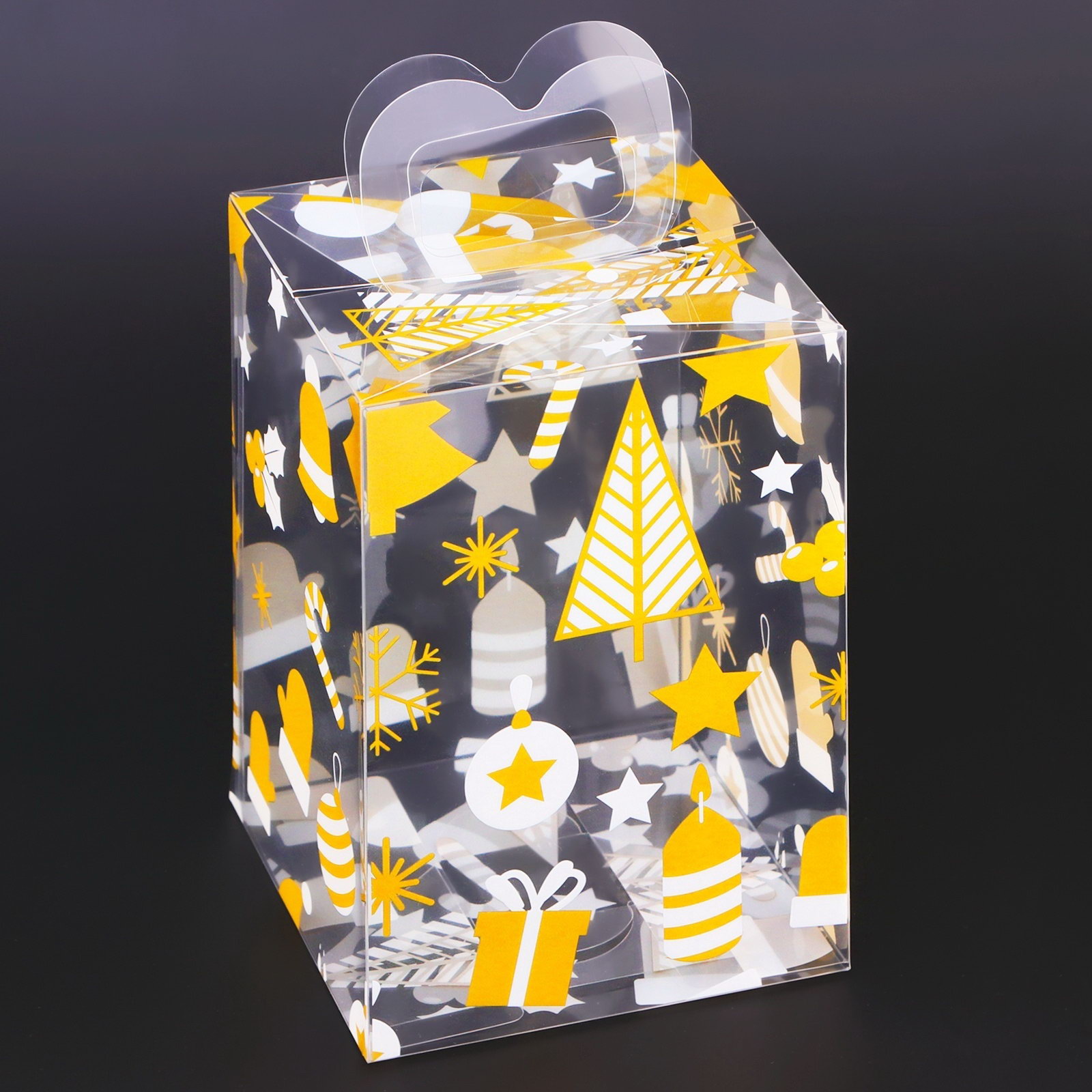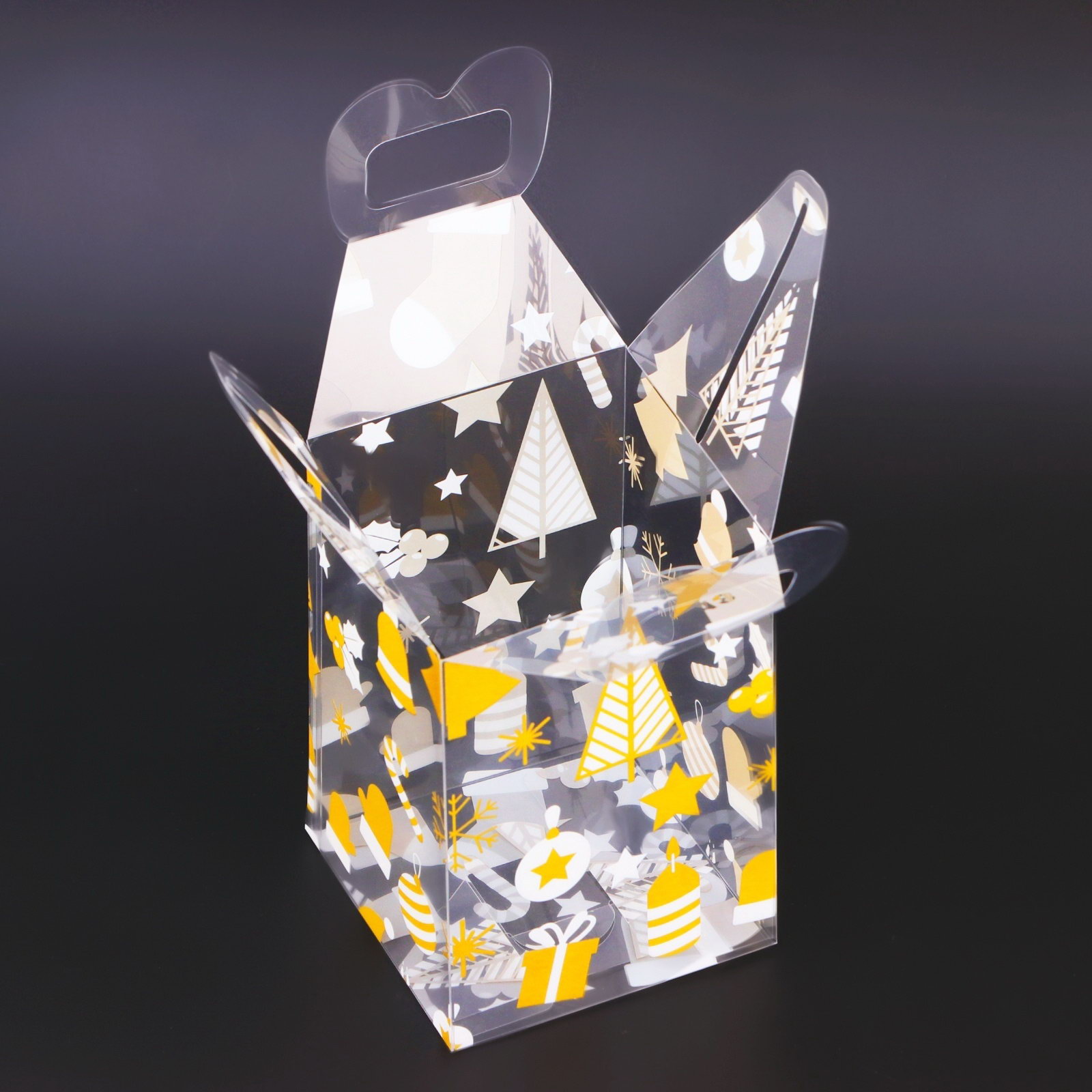 Коробка подарочная новогодняя складная ПВХ "Ёлочки" 9x9x13 см, UPAK LAND, Китай