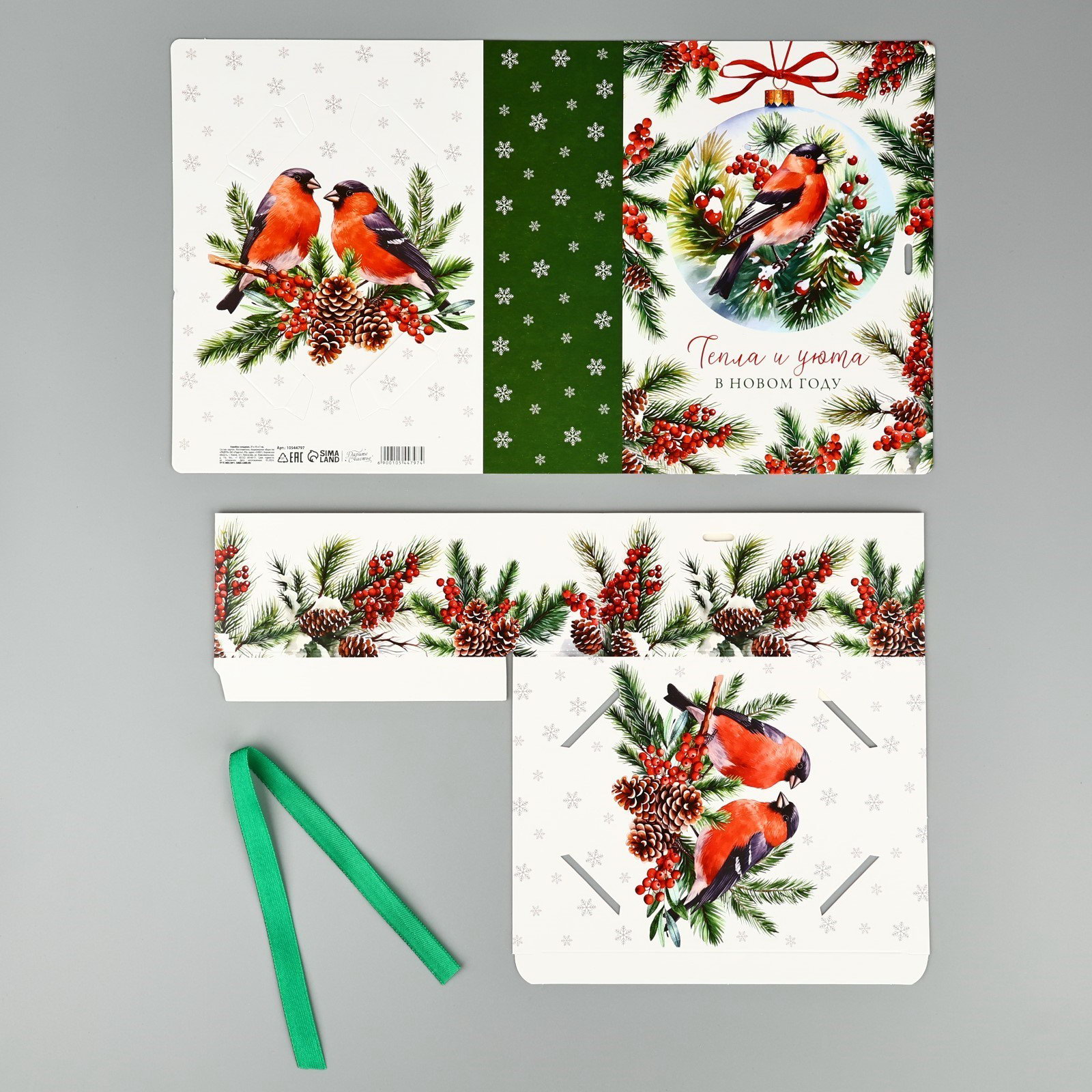 Складная новогодняя коробка-книга "Снегири", 21 x 15 x 7 см, Дарите Счастье, Россия