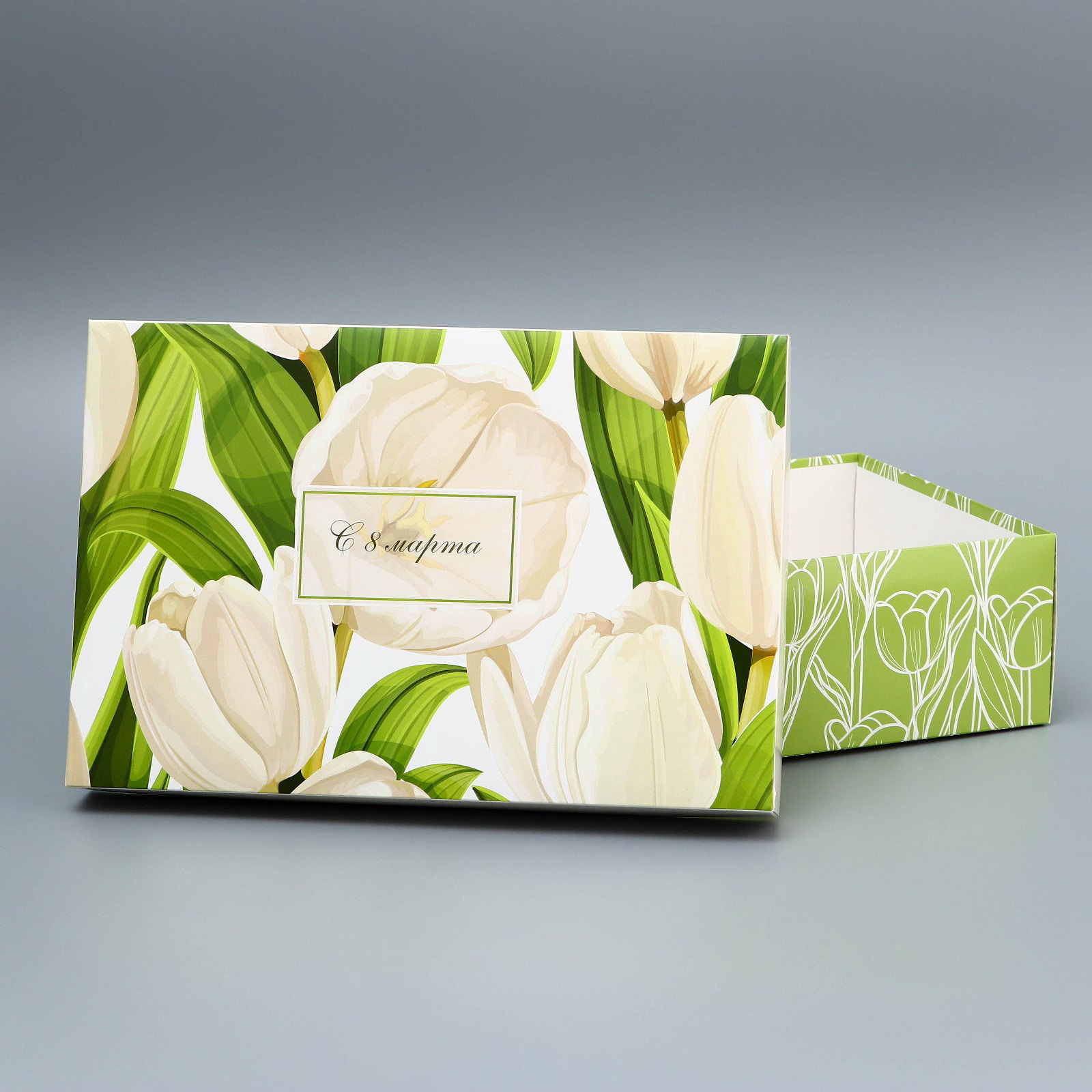 Коробка складная, крышка-дно, "С 8 марта", 30x20x9 см без окна, 20x30x9 см., UPAK LAND, Китай