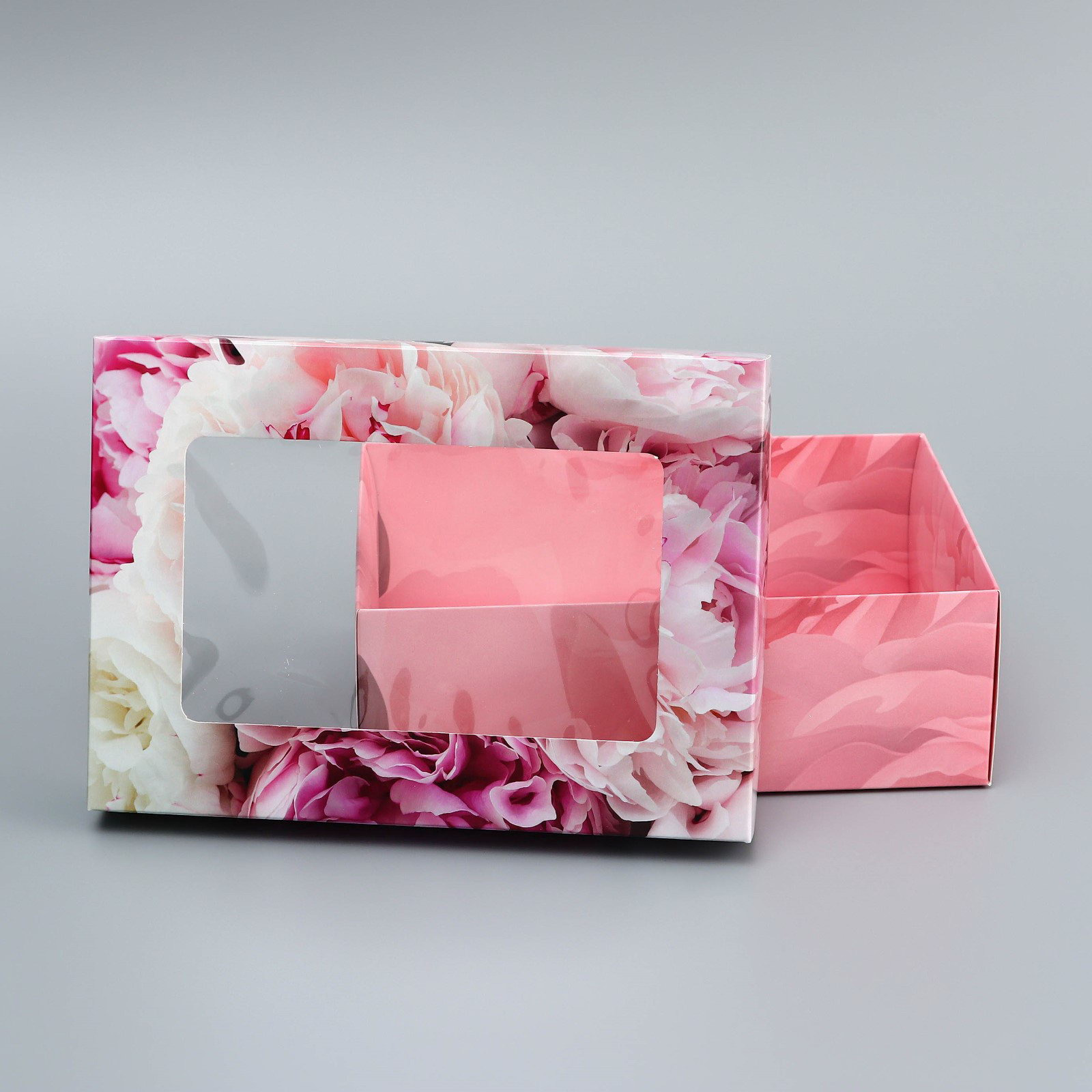 Коробка складная, крышка-дно, "Самой нежной", 21x15x7 см с окном, 15x21x7 см., UPAK LAND, Китай