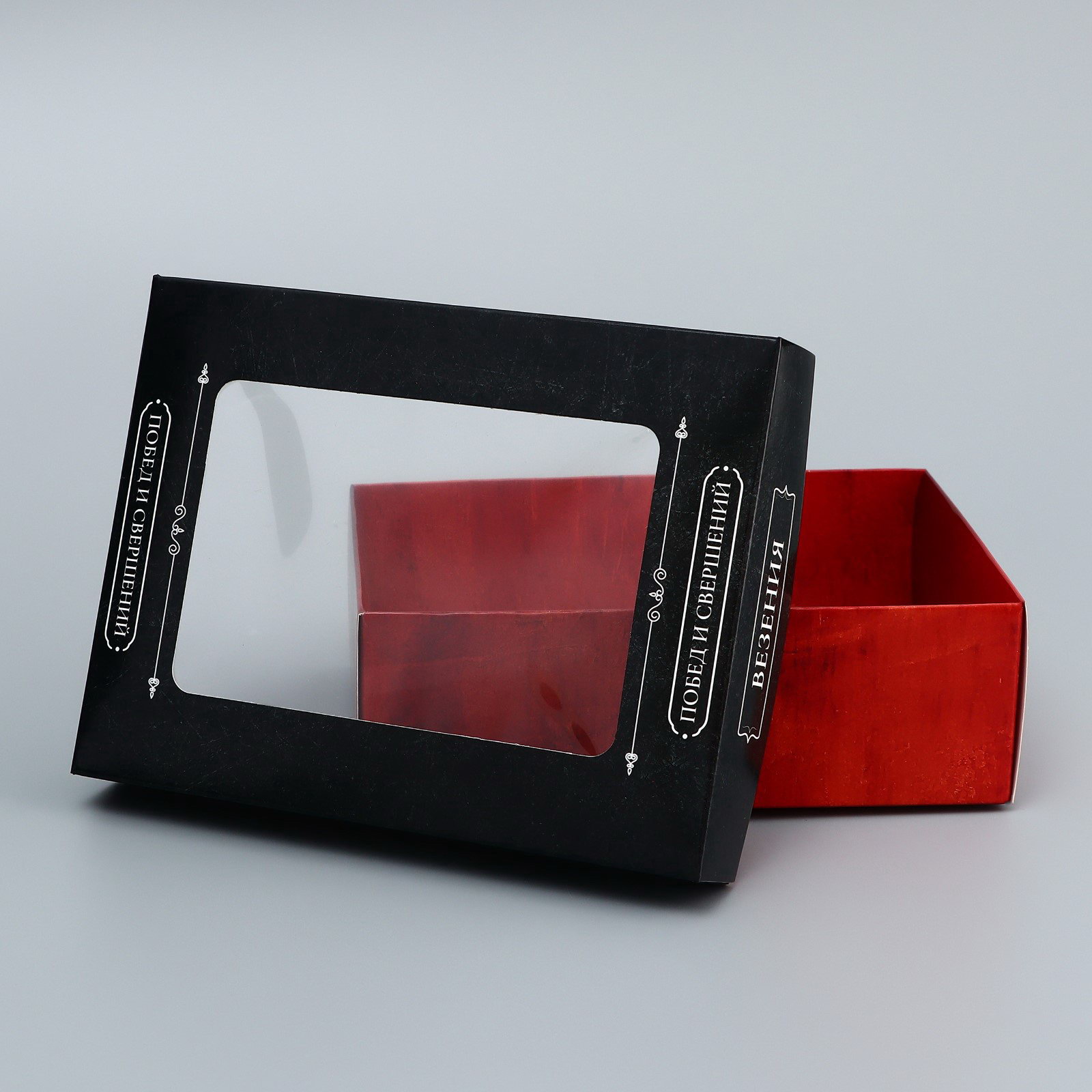 Коробка подарочная складная, крышка - дно "Настоящему мужчине", 16.5x12.5x5.2 см с окном, 12.5x16.5x5.2 см., UPAK LAND, Китай