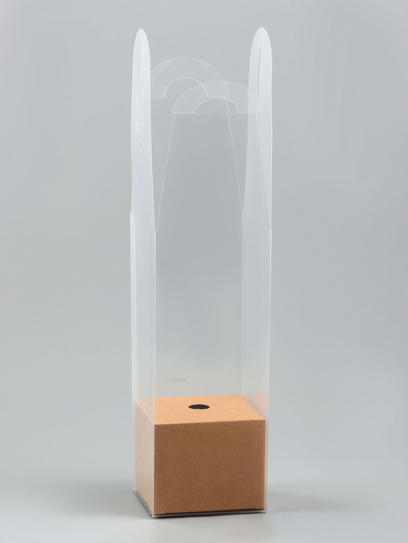 Коробка для мини-букетов и цветов, прозрачная с крафт-основанием 28x8x8 см, крафт, 8x28x8 см., UPAK LAND, Китай