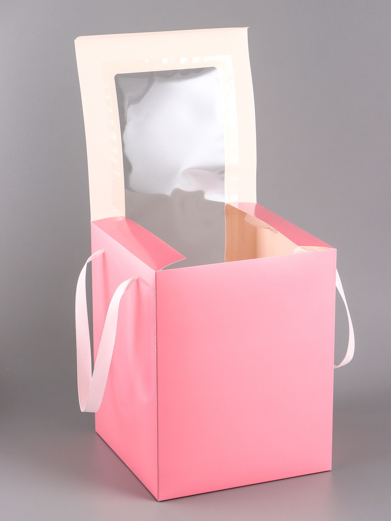 Коробка для цветов и букетов, розовая с ПВХ окном, 20x20x25 см, 20x20x25 см., UPAK LAND, Китай