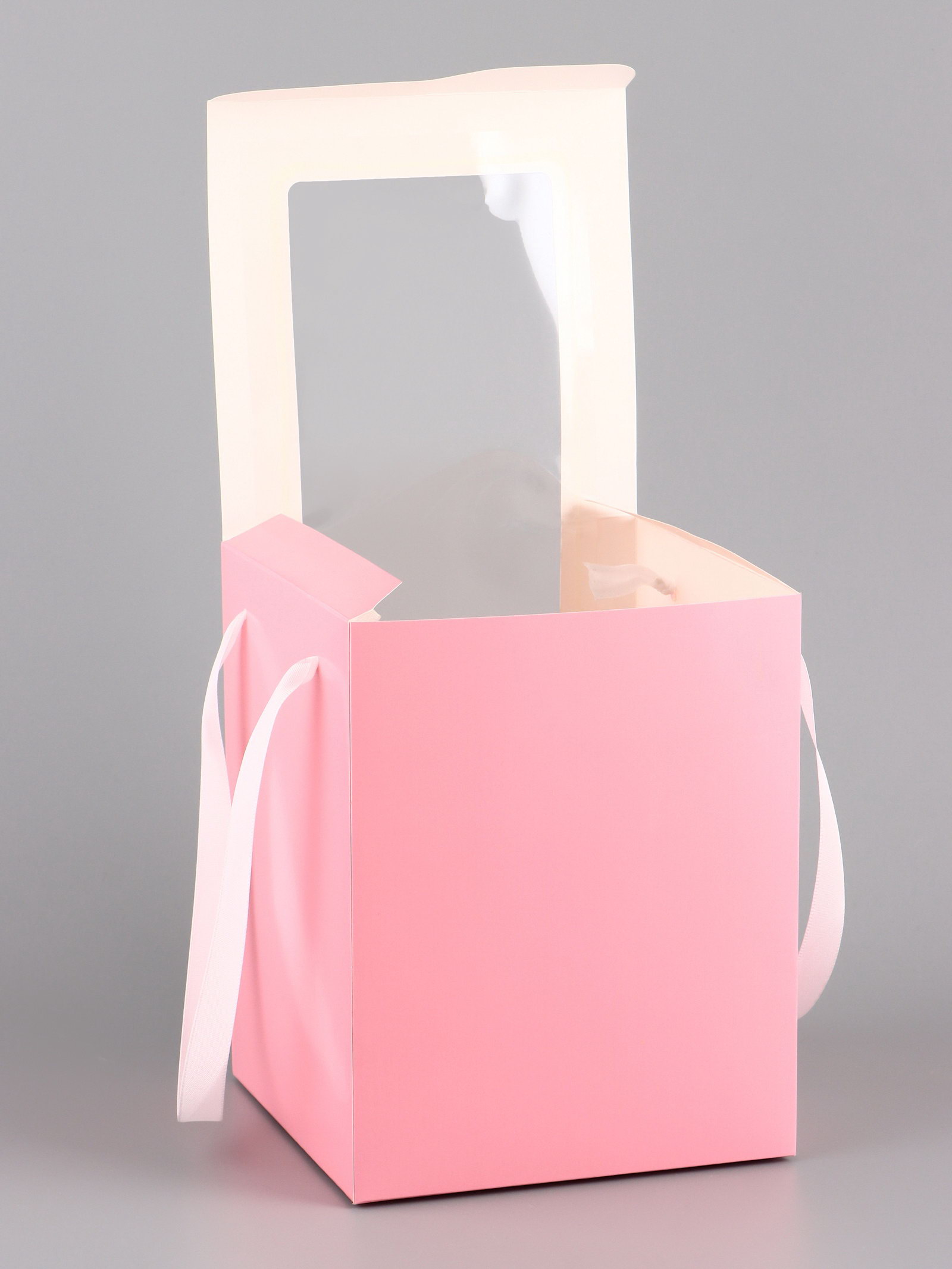 Коробка для цветов и букетов, розовая с ПВХ окном, 16x16x20 см, 16x16x20 см., UPAK LAND, Китай
